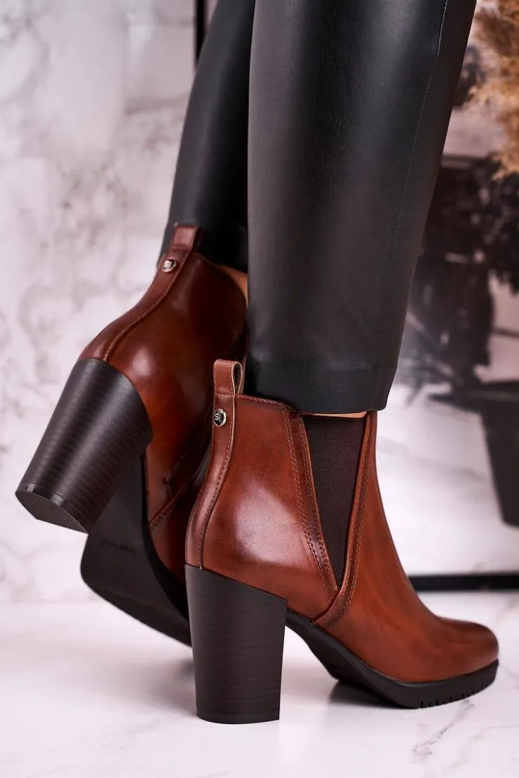 Buty Sergio Leone Botki Na Słupku Ocieplane Sergio Leone Brązowe BT311