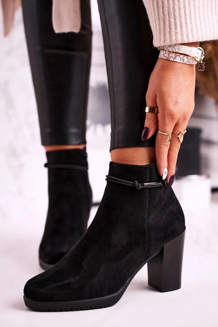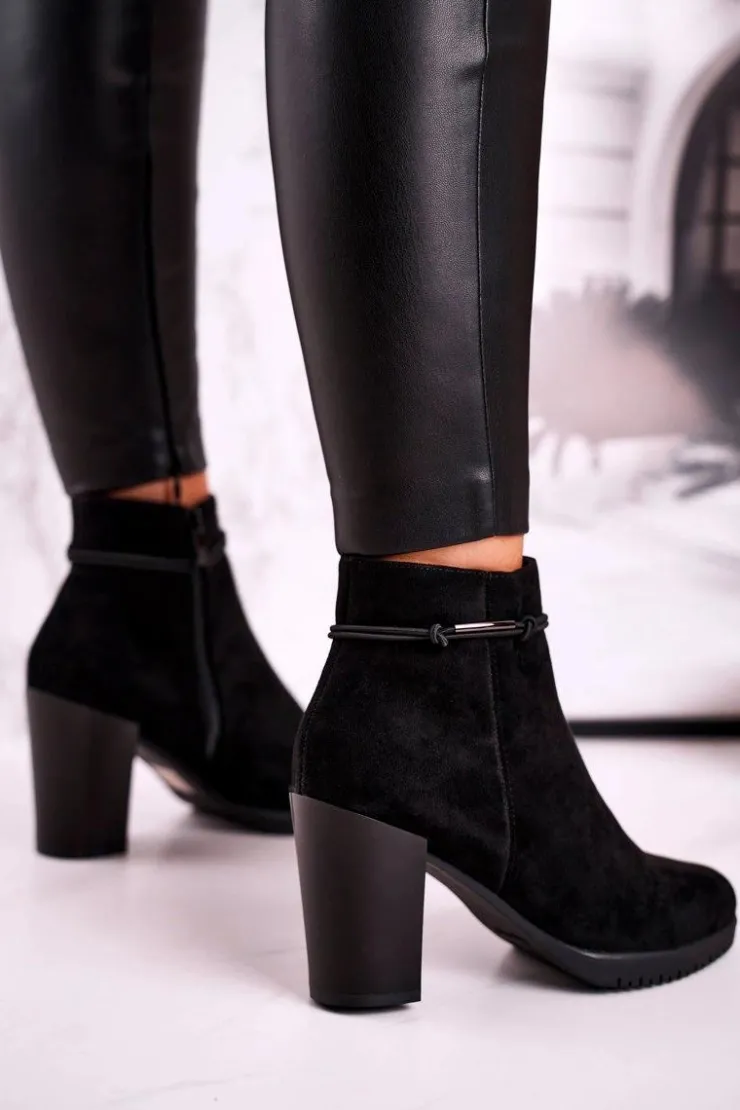 Buty Sergio Leone Botki Na Słupku|Czarne Botki*Botki Na Słupku Sergio Leone Zamszowe Czarne BT306