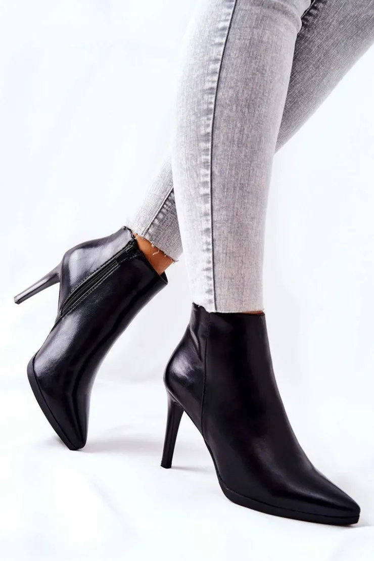 Buty powinny być modne oraz praktyczne, a takie właśnie są nasze botki. Piękna szpilka, która uniesie naszą sylwetkę podkreślając przy tym figurę. Wnętrze pokryte miłym w dotyku kocem obuwniczym, przyjemnie przylegającym do stopy. Klasyczne botki zapinane na suwak. Przy wyborze rozmiaru prosimy sugerować się tabelą rozmiarów.