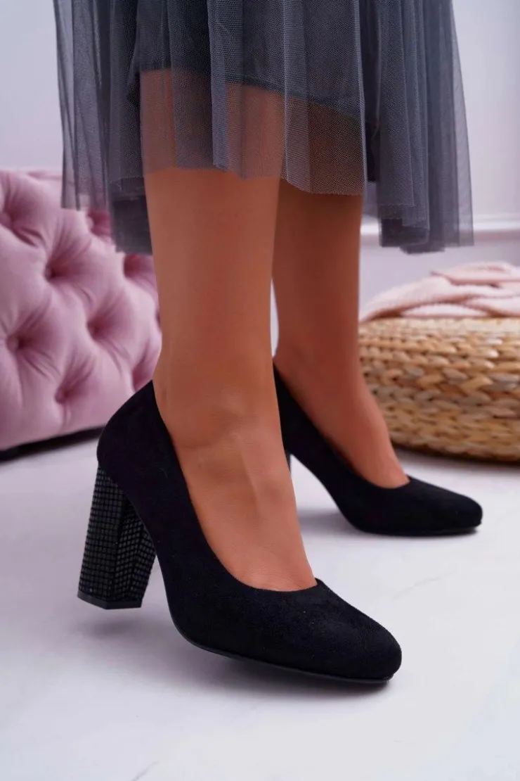 Buty Sergio Leone Czółenka Na Słupku|Czółenka Zamszowe*Damskie Czółenka Sergio Leone PB200 Zamszowe Czarne Selva