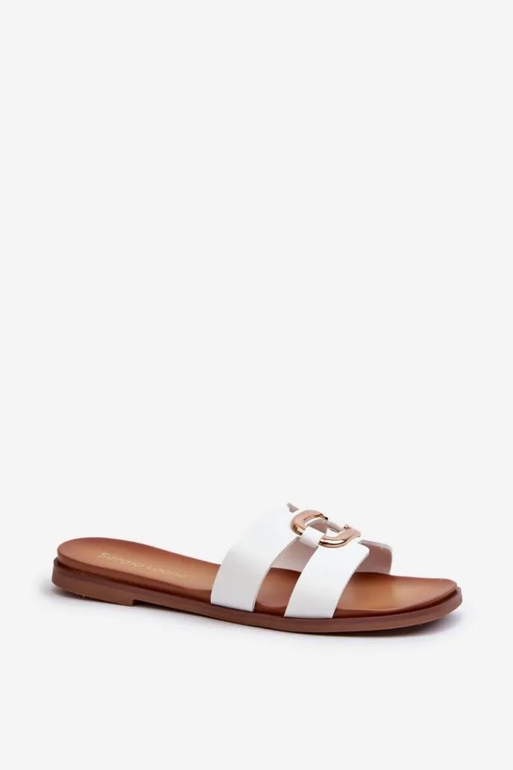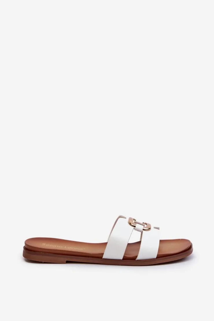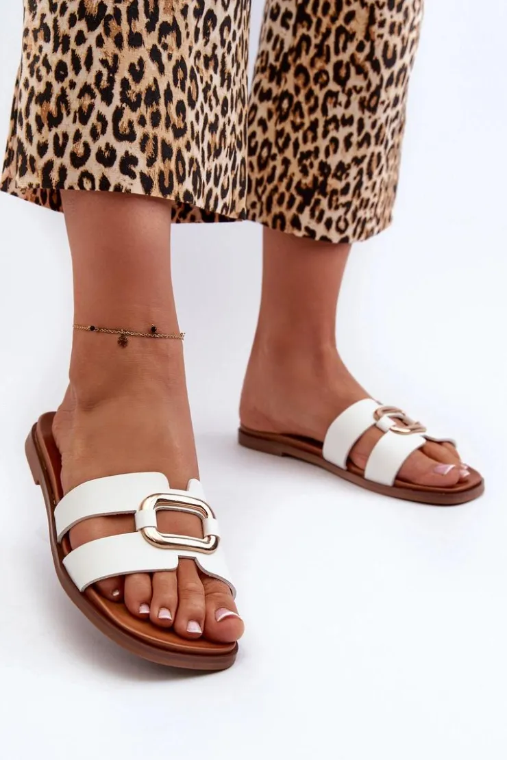 Eleganckie płaskie klapki damskie z eko skóry to idealne połączenie stylu i komfortu. Przód ozdobione złotym detalem, który dodaje subtelnej elegancji każdej stylizacji. Idealne na letnie dni pełne aktywności, gwarantują wygodę i swobodę ruchu. Modne i komfortowe w użytkowaniu — po prostu musisz je mieć. Przy wyborze rozmiaru prosimy sugerować się tabelą rozmiarów.