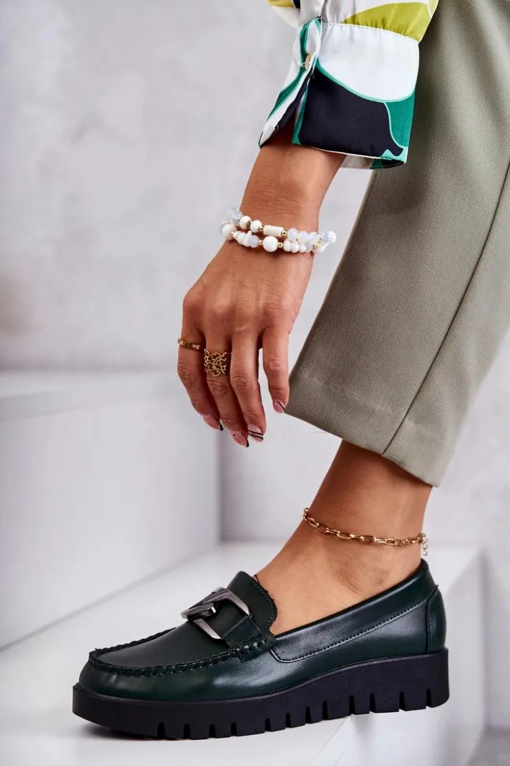 Klasyczne półbuty to doskonały wybór w stylizacjach do pracy. Świetnie prezentują się zarówno ze spodniami, jak i ze spódniczką. Zdobienie z tworzywa sztucznego pięknie podkreśla całość. Buty posiadają masywną podeszwę z wyraźnym wyżłobieniem. Lakierowana eko skóra o praktyczny wybór na co dzień. Półbuty Loafery to buty, które muszą znaleźć się w Twojej szafie! Przy wyborze rozmiaru prosimy sugerować się tabelą rozmiarów.