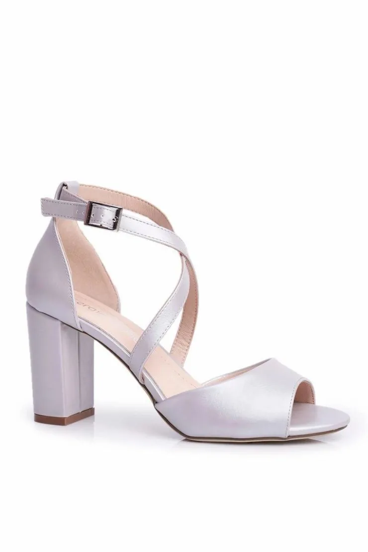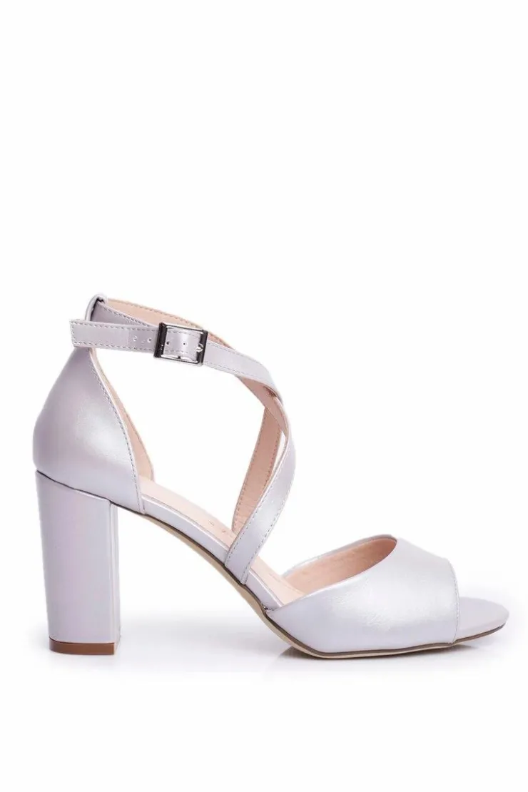 Buty Sergio Leone Sandały Na Obcasie*Sandały Damskie Na Słupku Sergio Leone Srebrna Perła SK865
