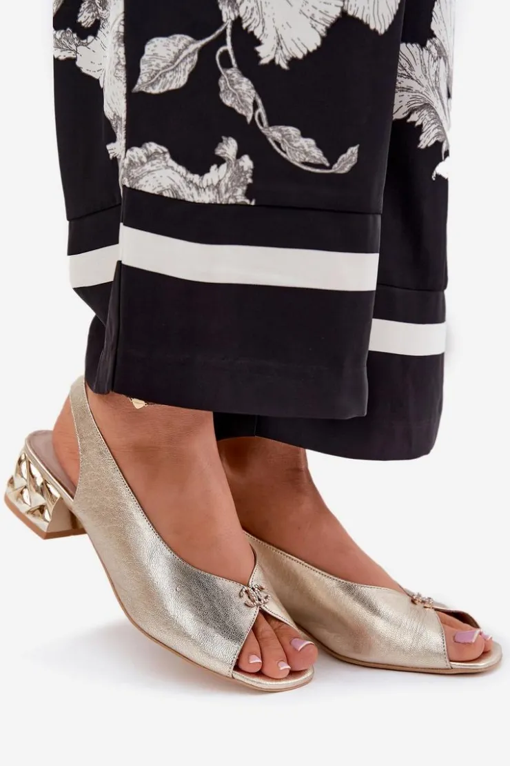 Sandały damskie od marki CheBello. Wykonane z wysokiej jakości skóry naturalnej. Model ten wyróżnia się obcasem, który nadaje nowoczesnego charakteru. Z przodu znajduje się mały, ozdobny detal. Niezwykle elegancki fason, który doskonale dopełni stylizacje z sukienkami oraz spodniami. Doskonałe na różne uroczystości i wieczorne wyjścia. Przy wyborze rozmiaru prosimy sugerować się tabelą rozmiarów.