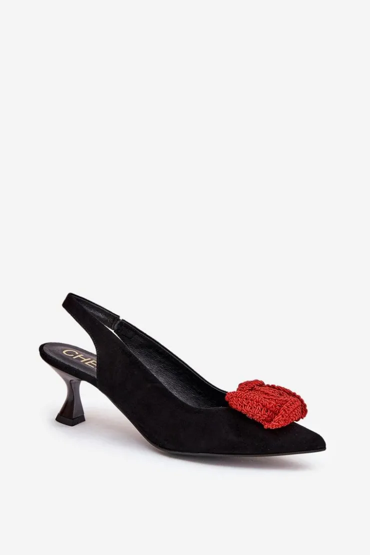 CheBello Szpilki Zamszowe|Czółenka Zamszowe*Zamszowe Eleganckie Czółenka Na Szpilce 4666 Czarne Czarny