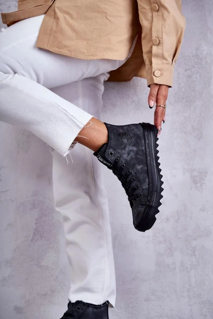 Wysokie, ciepłe, ponadczasowe sznurowane trampki BIG STAR! Komfortowe z delikatnym ociepleniem w postaci futerka z krótkim włosiem, które doskonale sprawdzi się w chłodniejsze dni. Antypoślizgowa, solidna podeszwa, to gwarancja bezpieczeństwa. Klasyczny wzór połączony z niespotykaną dotąd wygodą to doskonały przepis na praktyczne i oryginalne buty. Teraz w wersji bez zamka na boku! Przy wyborze rozmiaru prosimy sugerować się tabelą rozmiarów.
