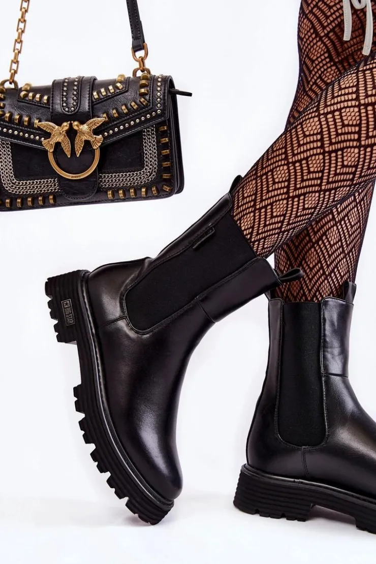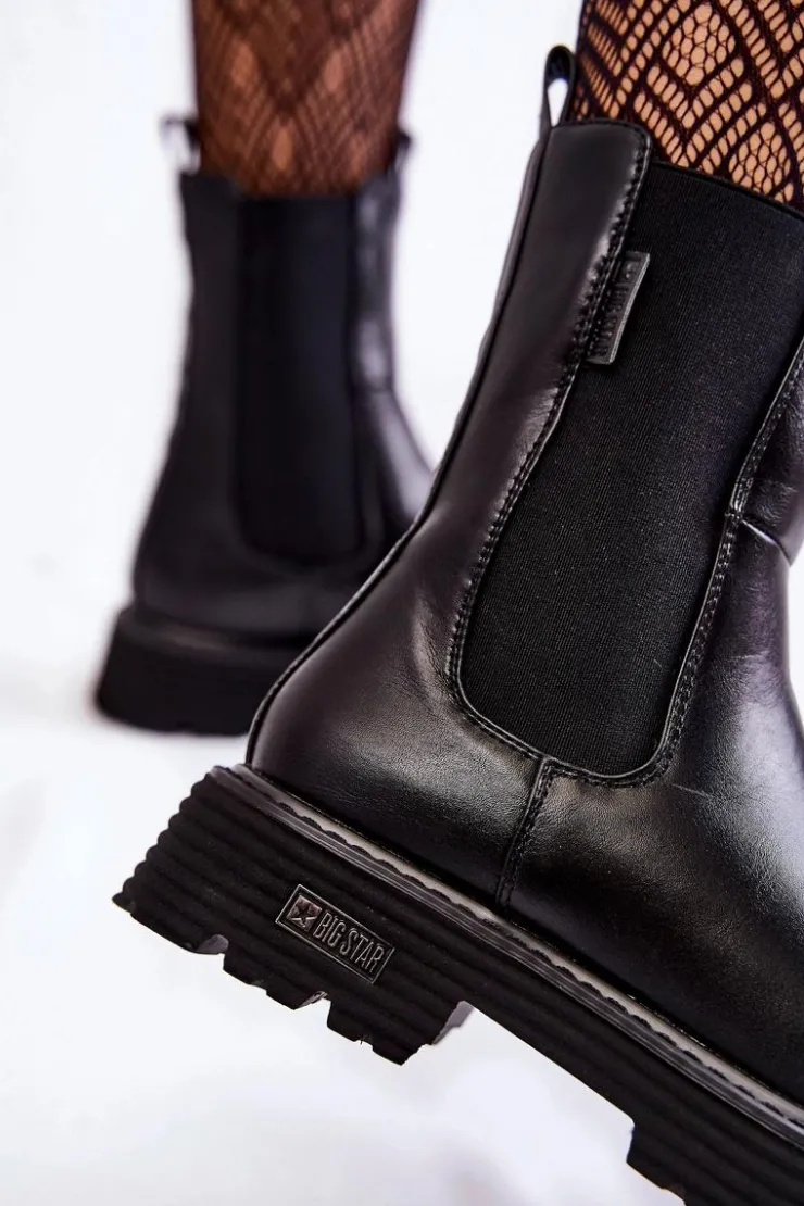 Wsuwane botki marki Big Star sprawdzą się niemalże w każdej stylizacji! Model ten został wykonany z eko skóry. Botki ocieplono miłym w dotyku kocem obuwniczym. Osadzone na płaskim obcasie i platformie z bieżnikiem. Nosek zaokrąglony. Elastyczna, wysoka cholewka pozwoli na odpowiednie dopasowanie obuwia. Model ten posiada dodatkowo usztywniany zapiętek. Przy wyborze rozmiaru prosimy sugerować się tabelą rozmiarów.