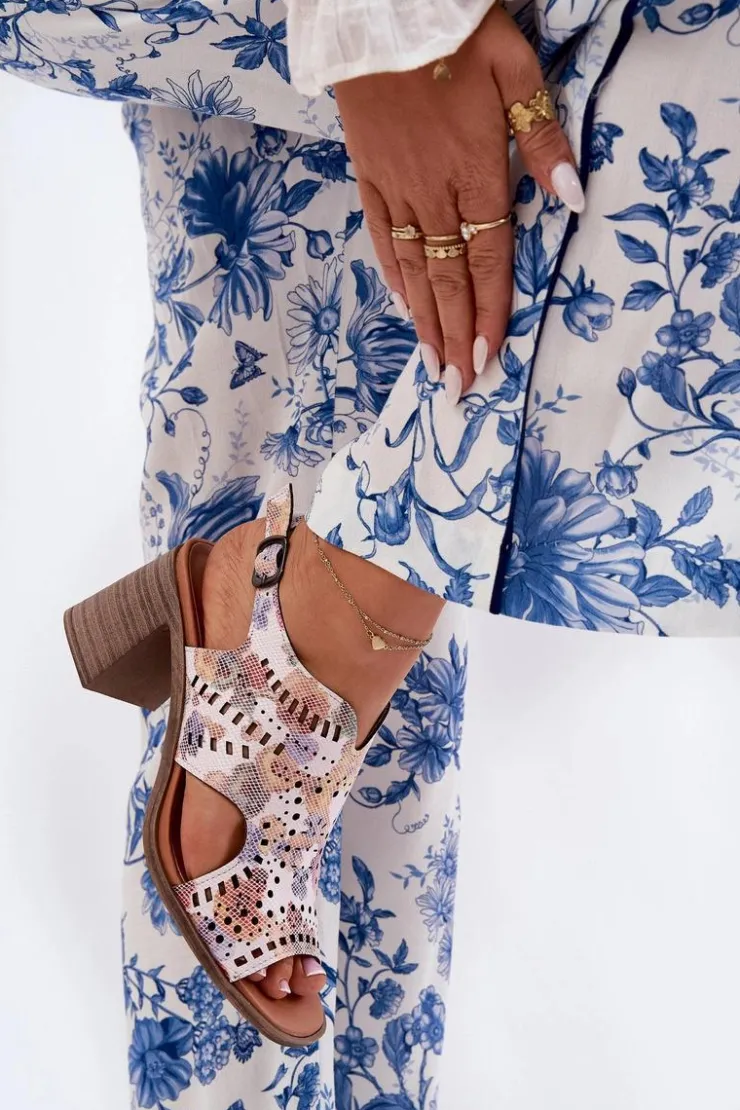 Sandały damskie marki Jezzi. Wykonane z wysokiej jakości eko skóry. Model ten wyróżnia ażurowa cholewka. Osadzone na obcasie w formie słupka. Regulowany pasek ze sprzączką umożliwia idealne dopasowanie do stopy. Dodatkowo wkładka ze skóry naturalnej zapewnia dodatkowy komfort i uczucie miękkości. Te stylowe sandały będą doskonałym uzupełnieniem letnich stylizacji. Przy wyborze rozmiaru prosimy sugerować się tabelą rozmiarów.