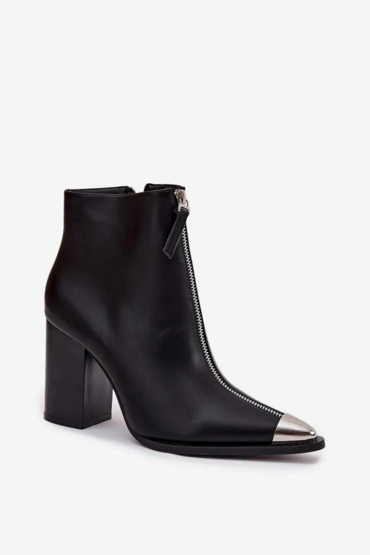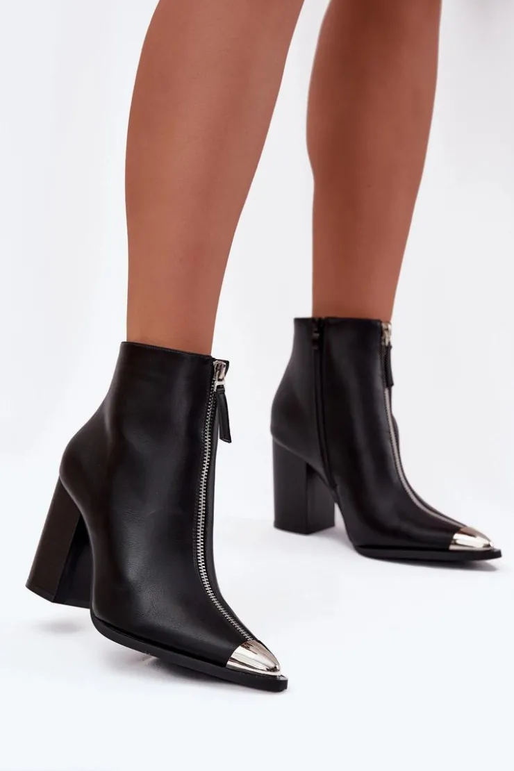 Botki damskie z eko skóry to stylowa propozycja na co dzień i do bardziej wyjściowych stylizacji. Model osadzony na stabilnym słupku zapewnia komfortowy krok, a zamek po boku ułatwia szybkie zakładanie i dopasowanie do stopy. Dodatkowy ozdobny zamek z przodu oraz subtelny metalowy detal nadają nowoczesnego charakteru. Przy wyborze rozmiaru prosimy sugerować się tabelą rozmiarów.