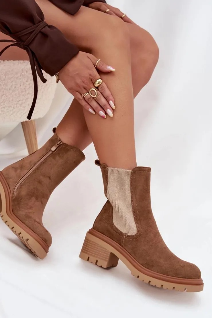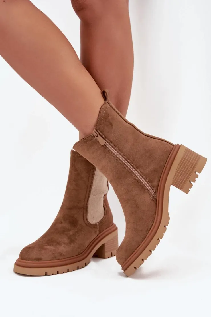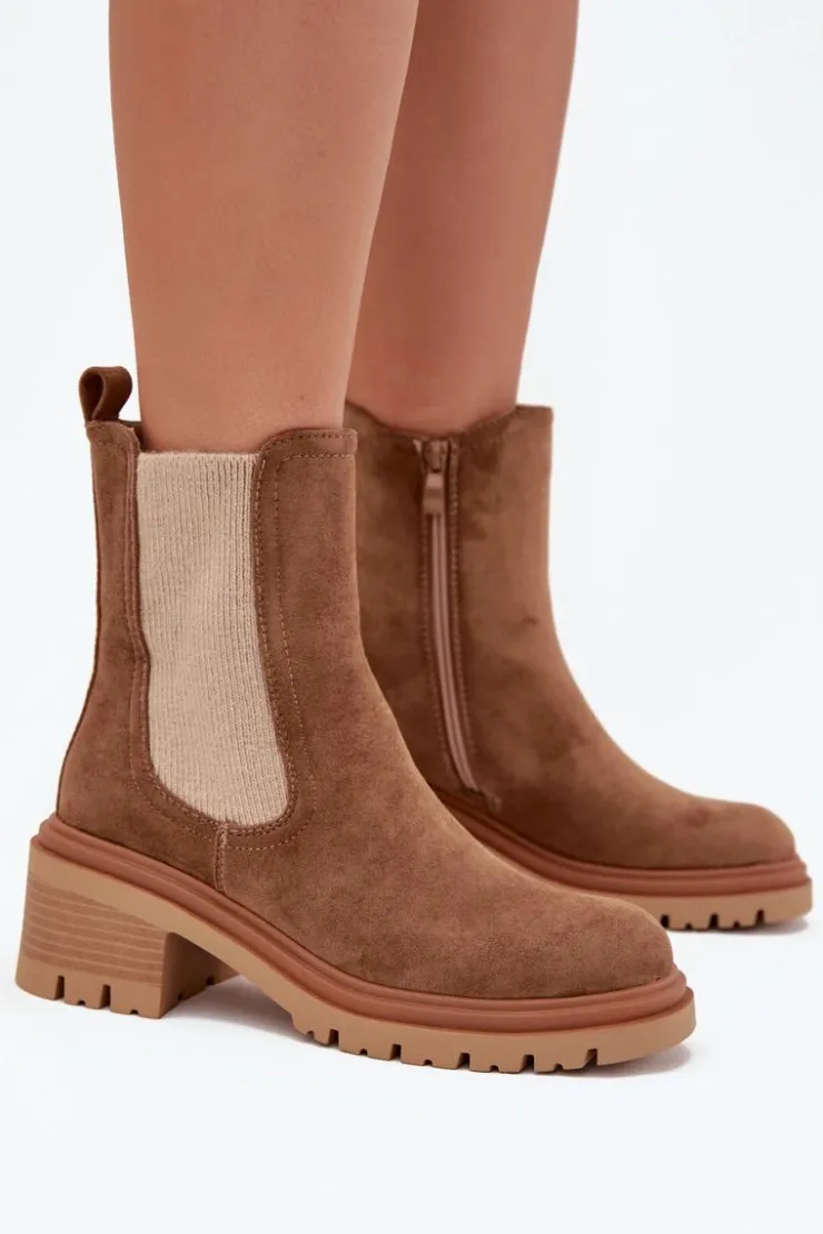 Botki sztyblety damskie wykonane z eko zamszu to klasyczny wybór na chłodniejsze dni. Osadzone na obcasie typu klocek, zapewniają wygodę i stabilność. Zaokrąglone noski dodają subtelnego charakteru, a wnętrze ocieplone kocem obuwniczym gwarantuje ciepło i komfort przez cały dzień. Zapinane na zamek, umożliwiają szybkie zakładanie i zdejmowanie. Idealne do codziennych stylizacji. Przy wyborze rozmiaru prosimy sugerować się tabelą rozmiarów.
