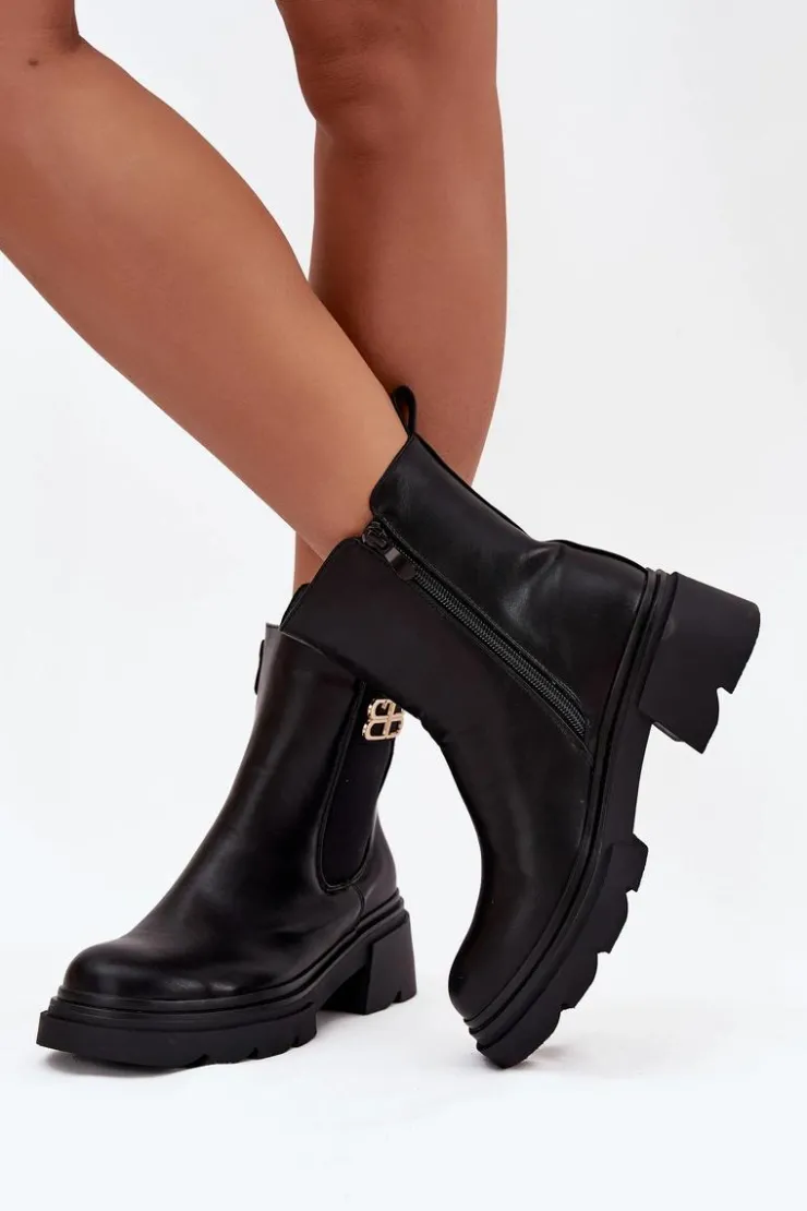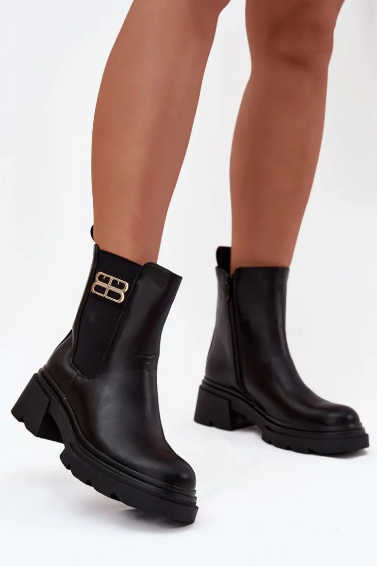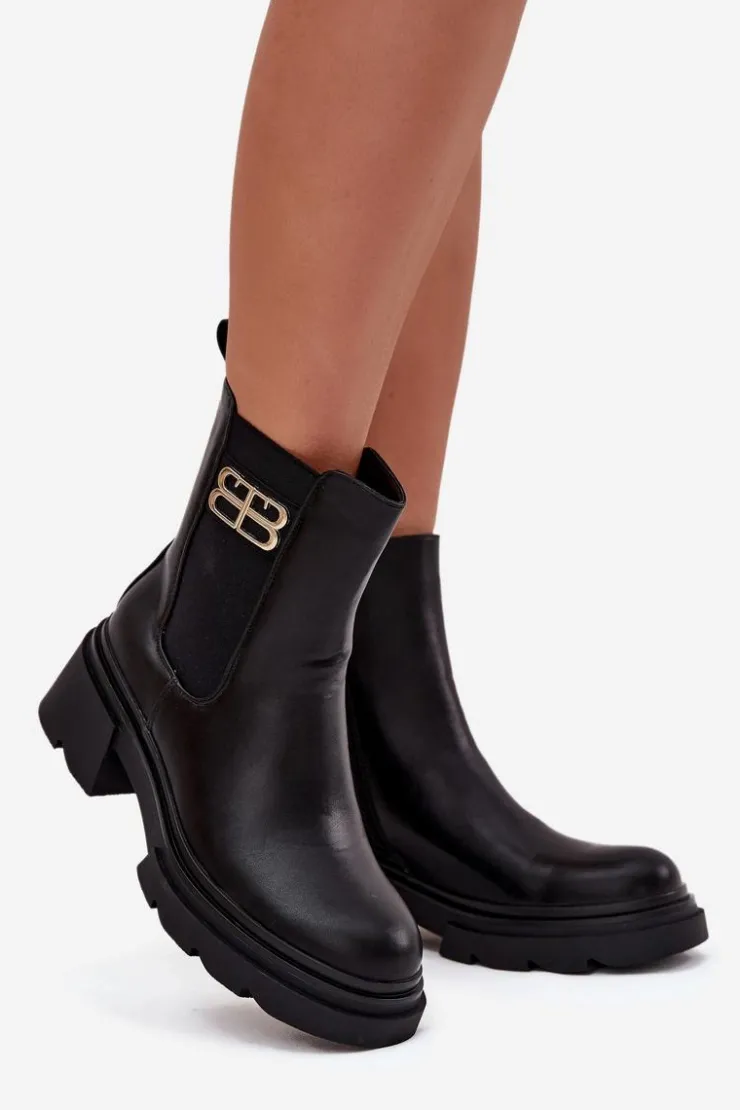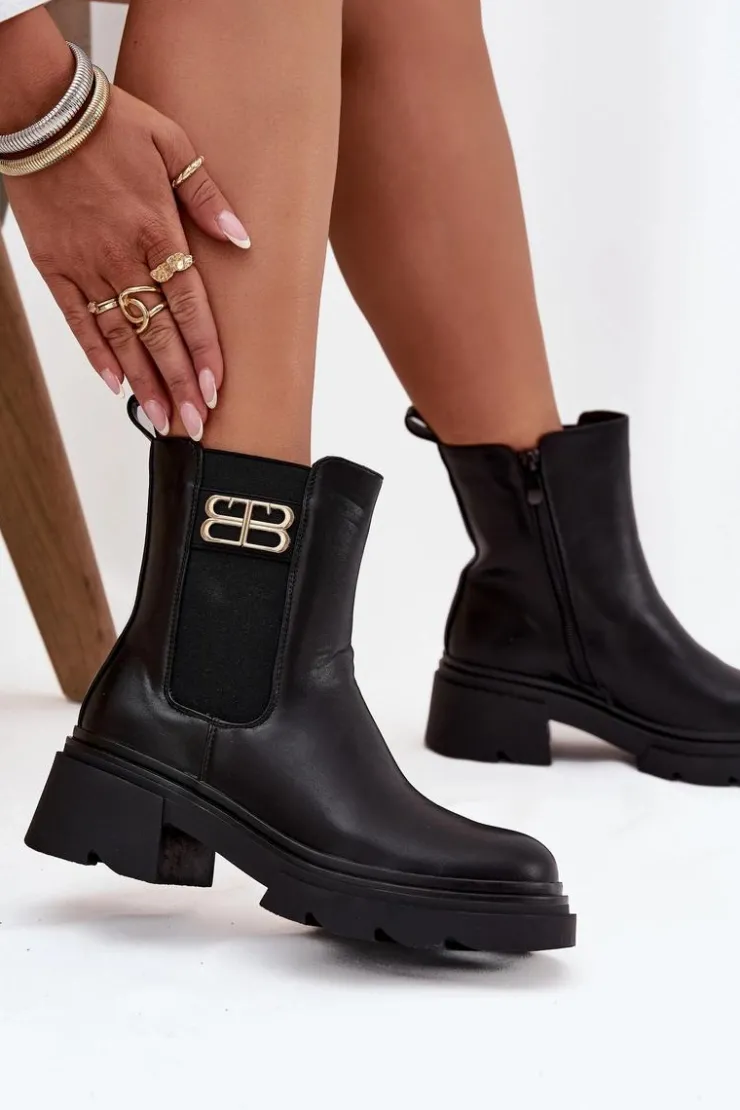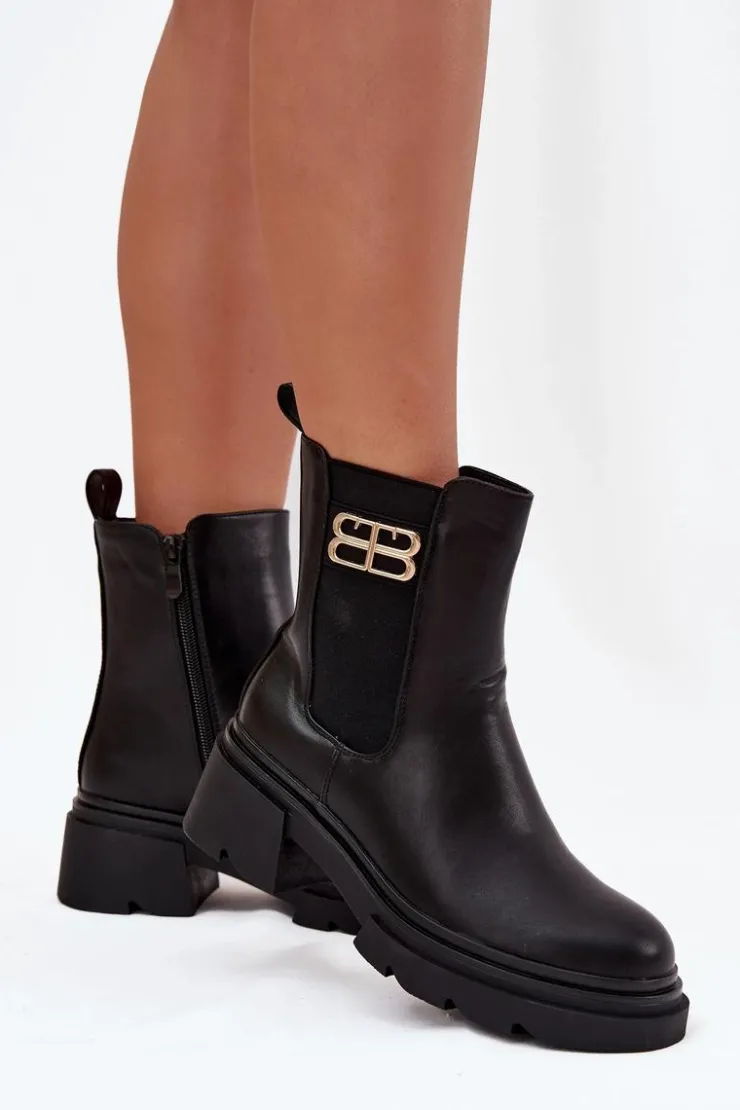 Botki sztyblety damskie wykonane z eko skóry to klasyczny model, który doskonale sprawdzi się w sezonie jesienno-zimowym. Prosty fason, zapinany na zamek gwarantuje wygodę zakładania, a ocieplenie kocem obuwniczym zapewnia komfort i ciepło w chłodniejsze dni. Całość uzupełnia subtelny złoty detal umieszczony z boku cholewki, który dodaje nowoczesnego, stylowego akcentu. Model ten świetnie komponuje się zarówno z jeansami i płaszczem, jak i z sukienką czy spódnicą.