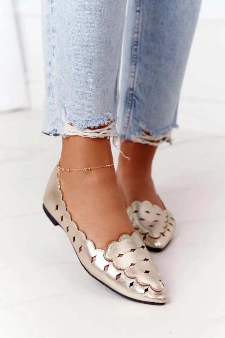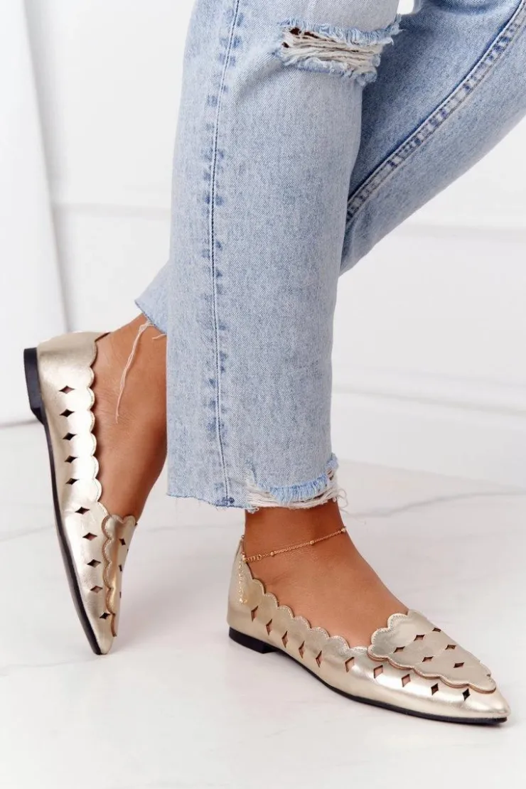 Clearance Boto Damskie Ażurowe Mokasyny Lu Boo Złote
