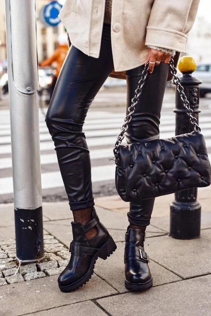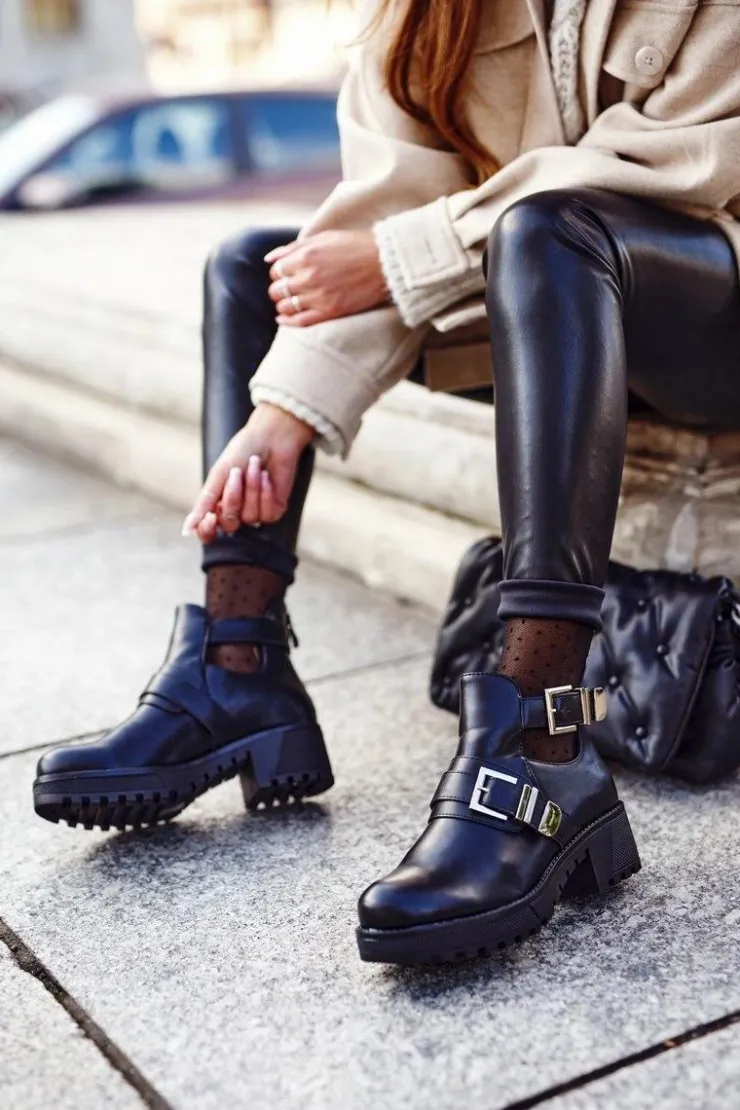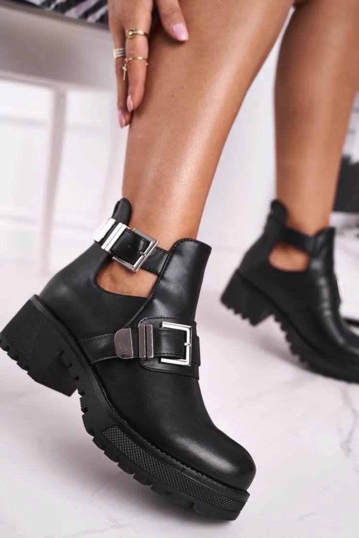 Ekskluzywne botki damskie! Wykonane ze skóry ekologicznej, ozdobione klamrami. Zapinane na zamek. Osadzone na delikatnym obcasie, który uniesie Twoją sylwetkę. Spraw sobie odrobinę nietuzinkowego look’u!