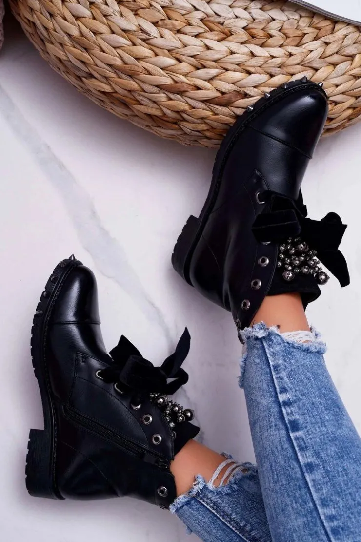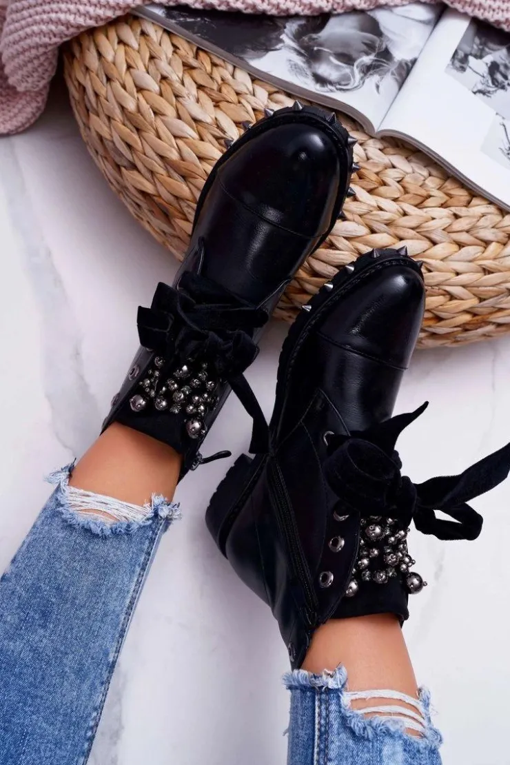 Clearance Boto Damskie Botki Ocieplane Wstążka Ćwieki Grethan