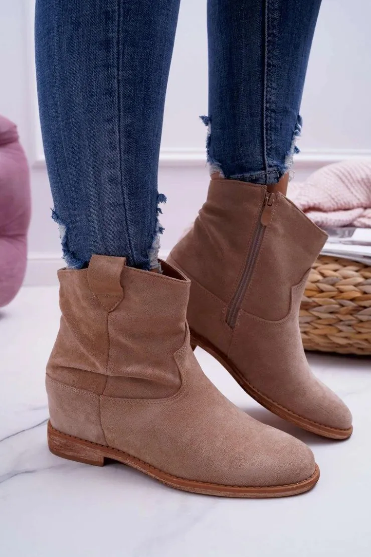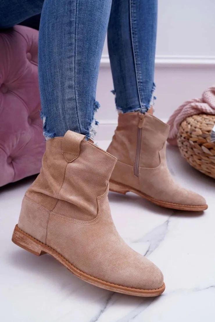 Clearance Boto Damskie Botki Saszki Na Koturnie Beżowe Ellen