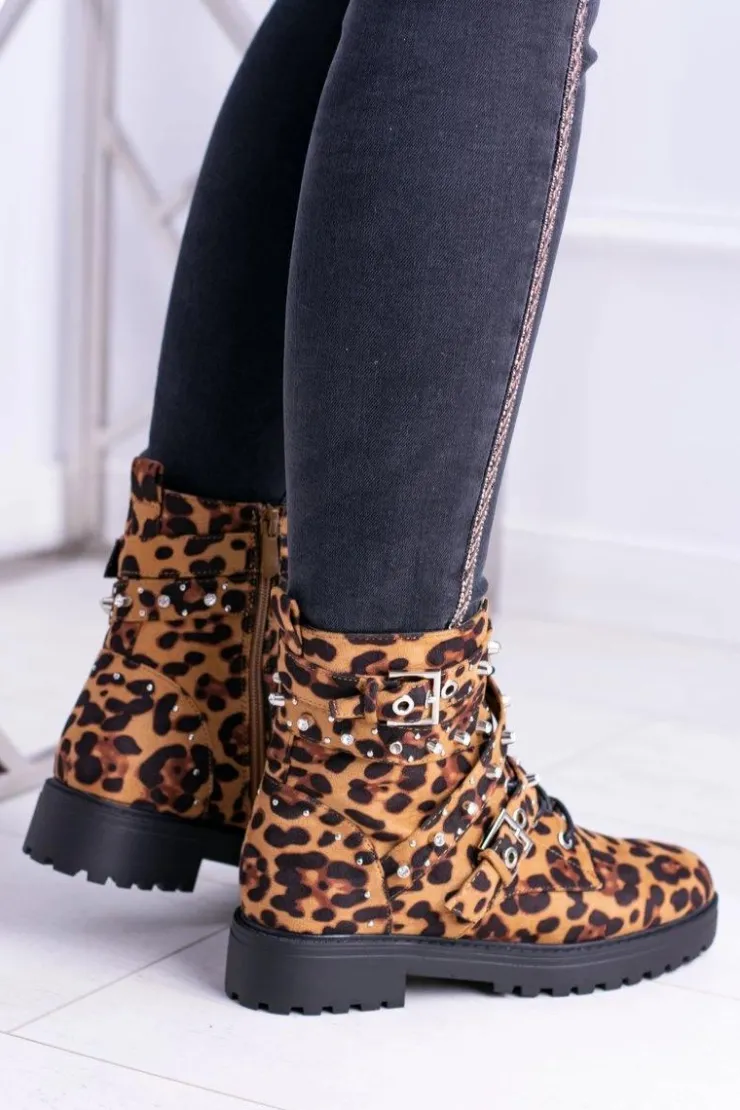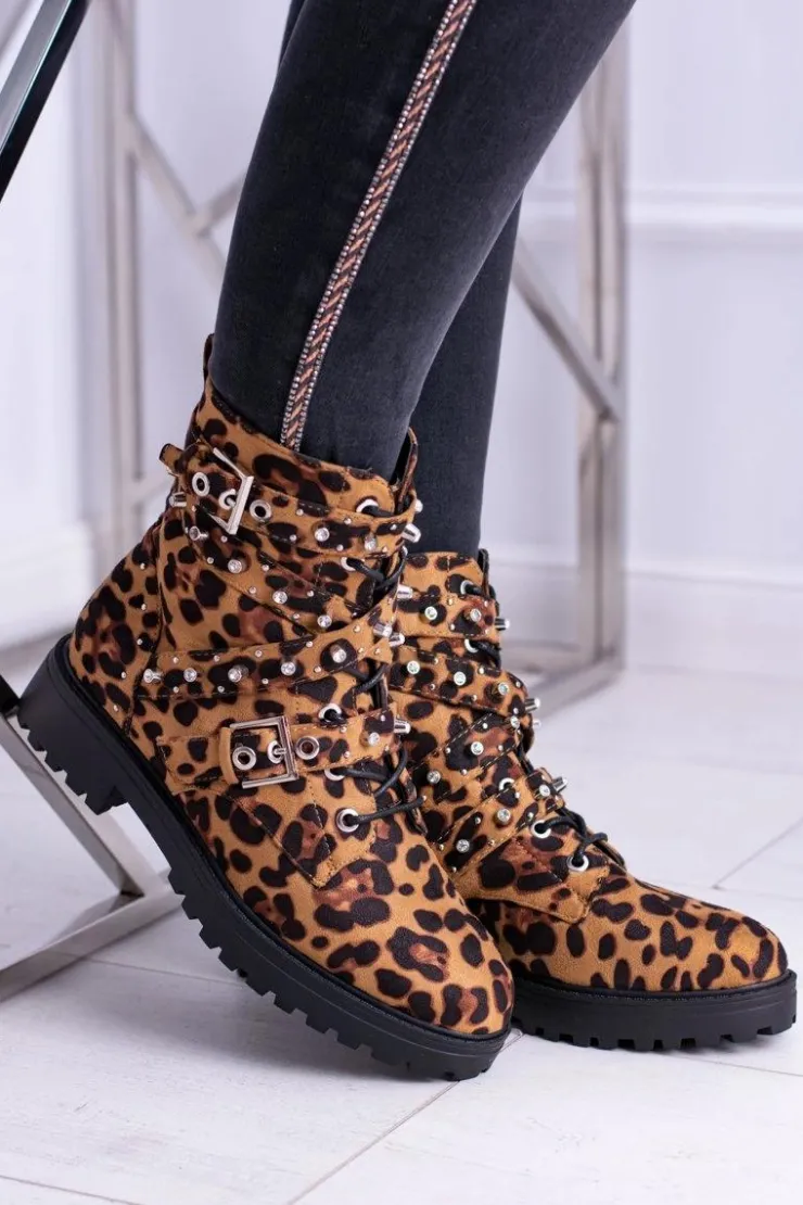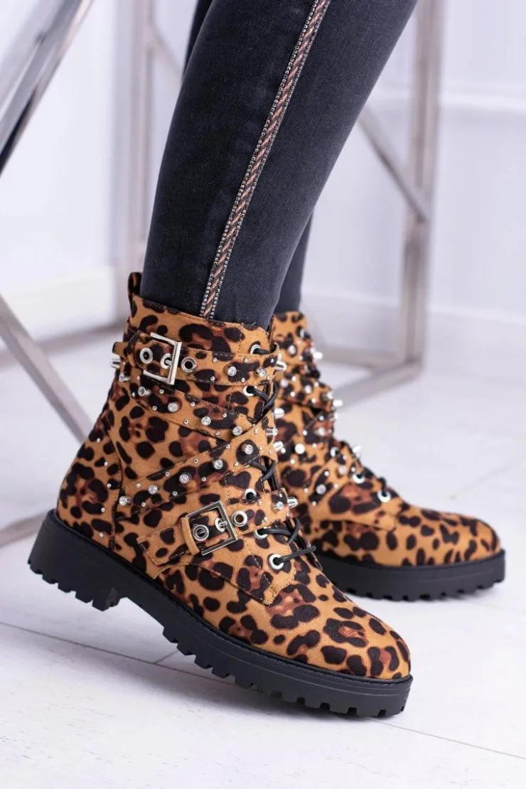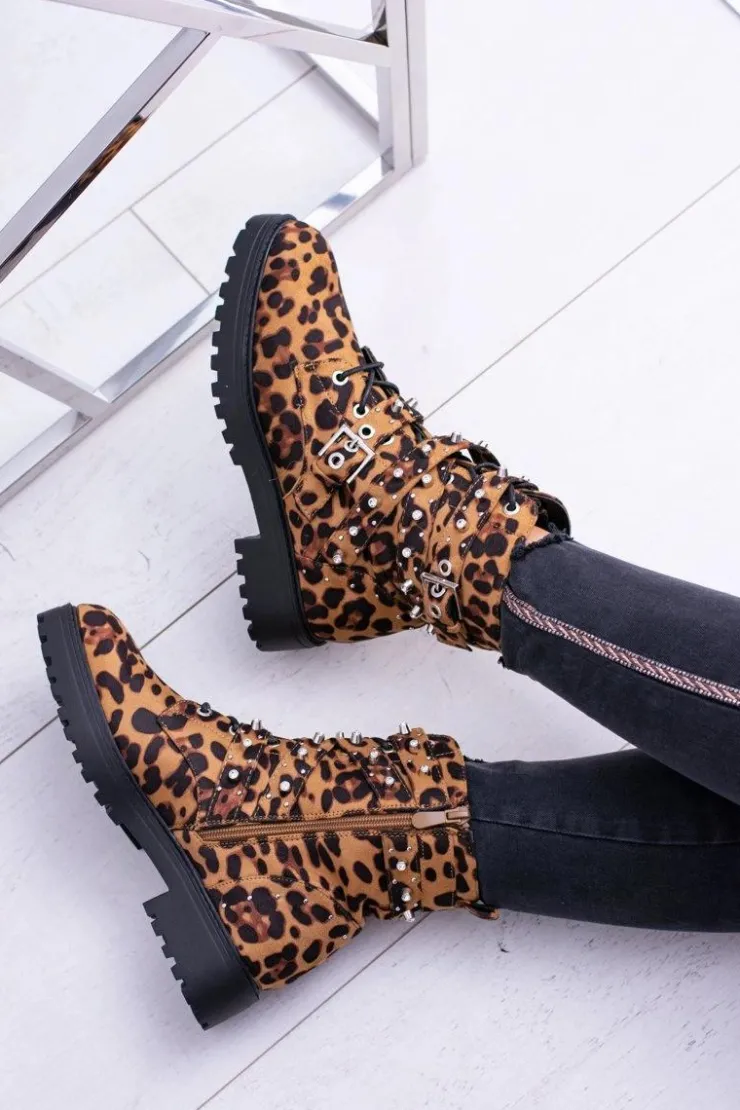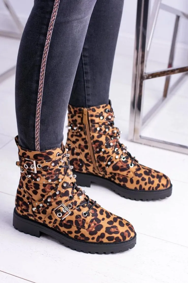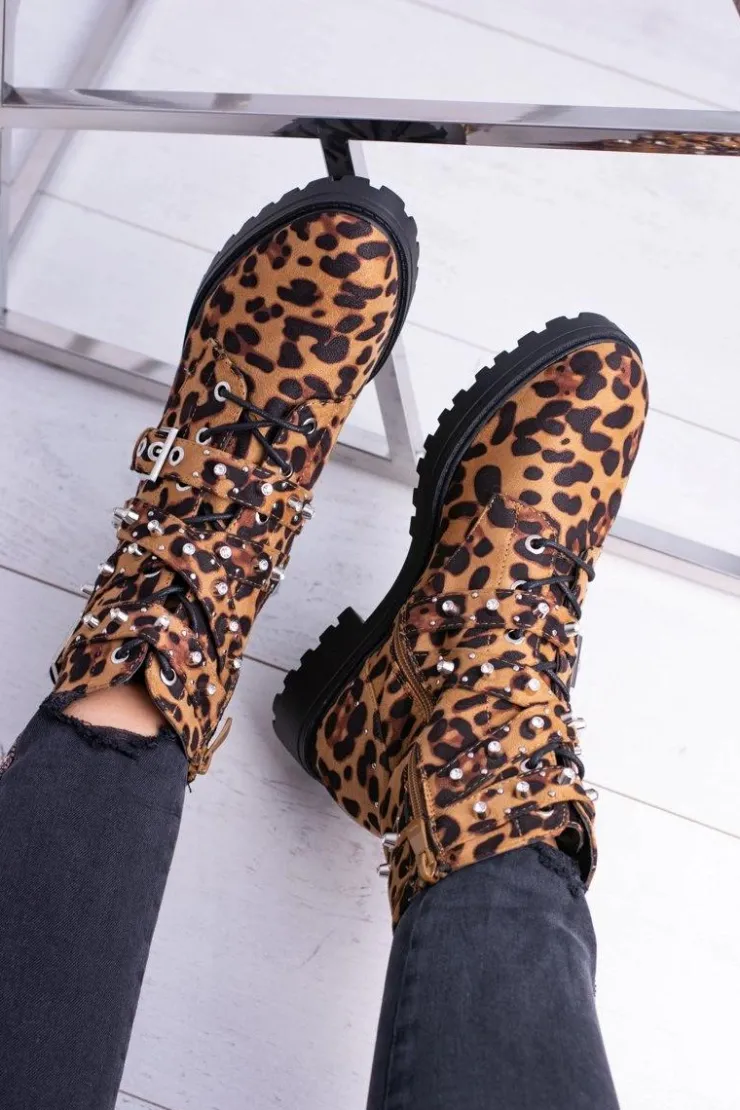 Clearance Boto Damskie Botki Wysokie Trapery W Panterkę Albere