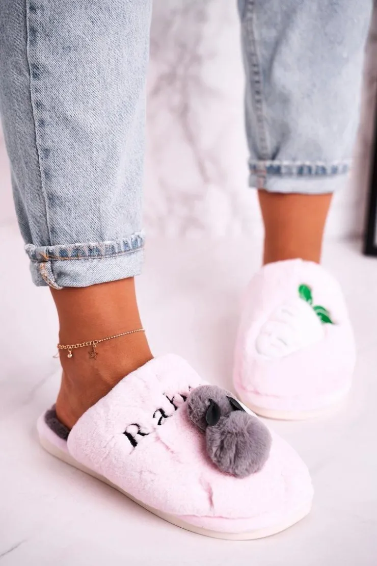 Clearance Boto Damskie Futrzane Papcie z Królikiem I Marchewką Różowe Follow Me