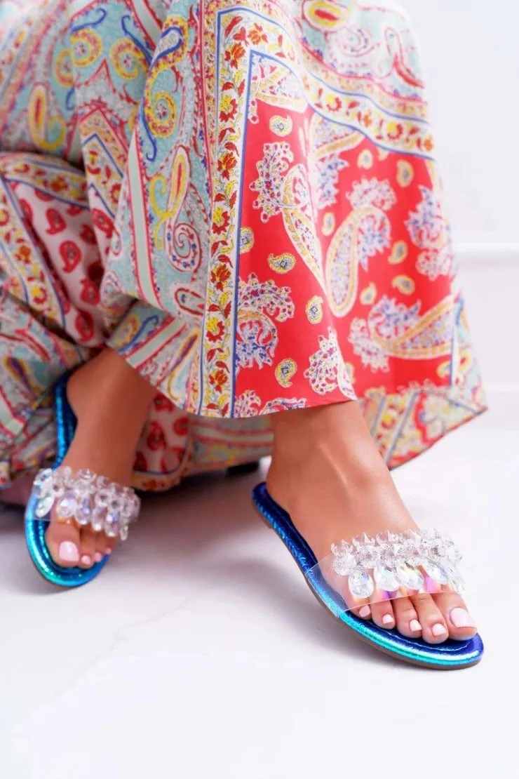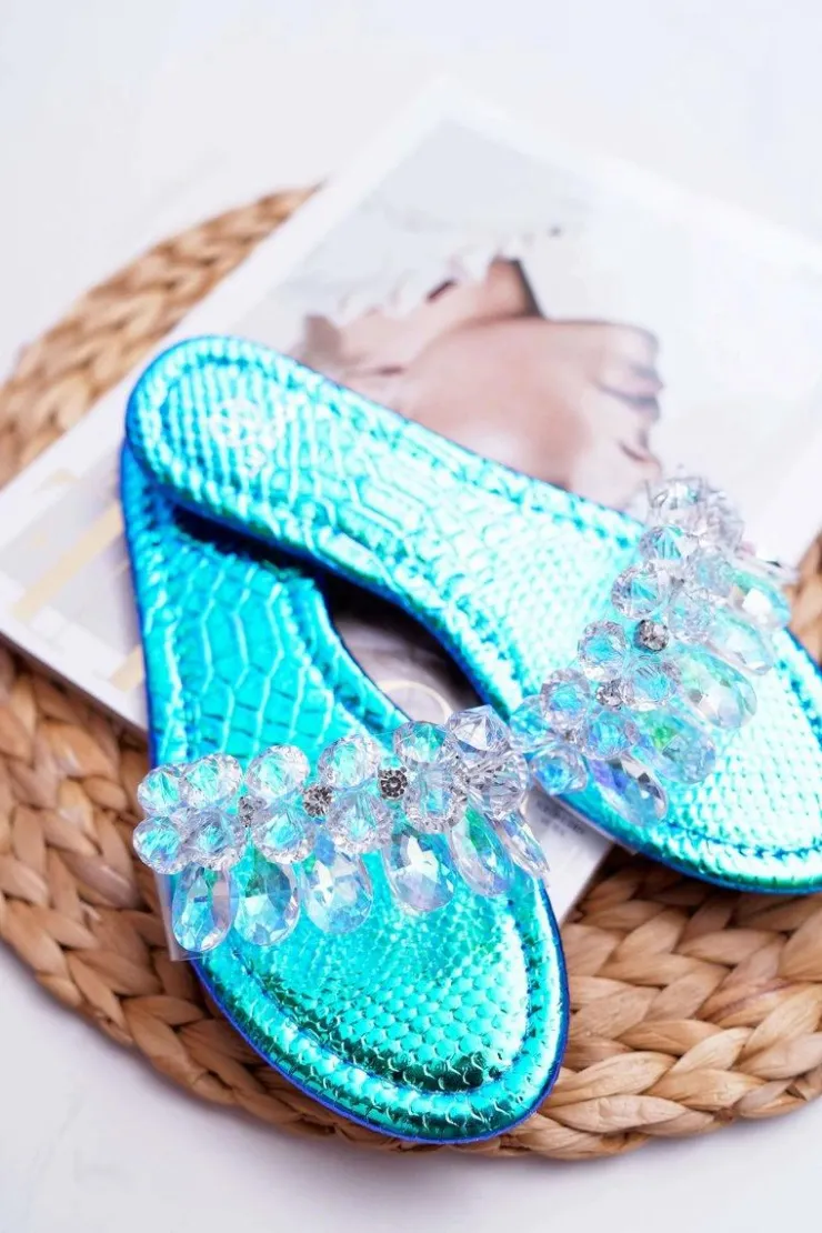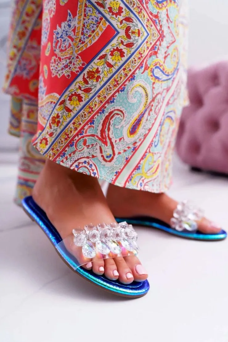 Clearance Boto Damskie Klapki Z Cyrkoniami Lu Boo Benzynowe Niebieskie Mediana
