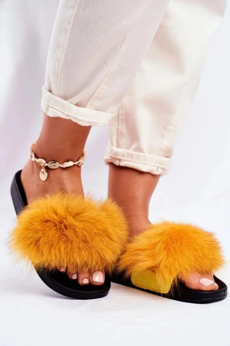 Wygodne klapki z naturalnym futerkiem. Gumowa, delikatnie profilowana podeszwa oraz miękka cholewka zapewnią komfort. Klapki dostępne są w wielu pięknych kolorach.Przy wyborze rozmiaru prosimy sugerować się tabelą rozmiarów.