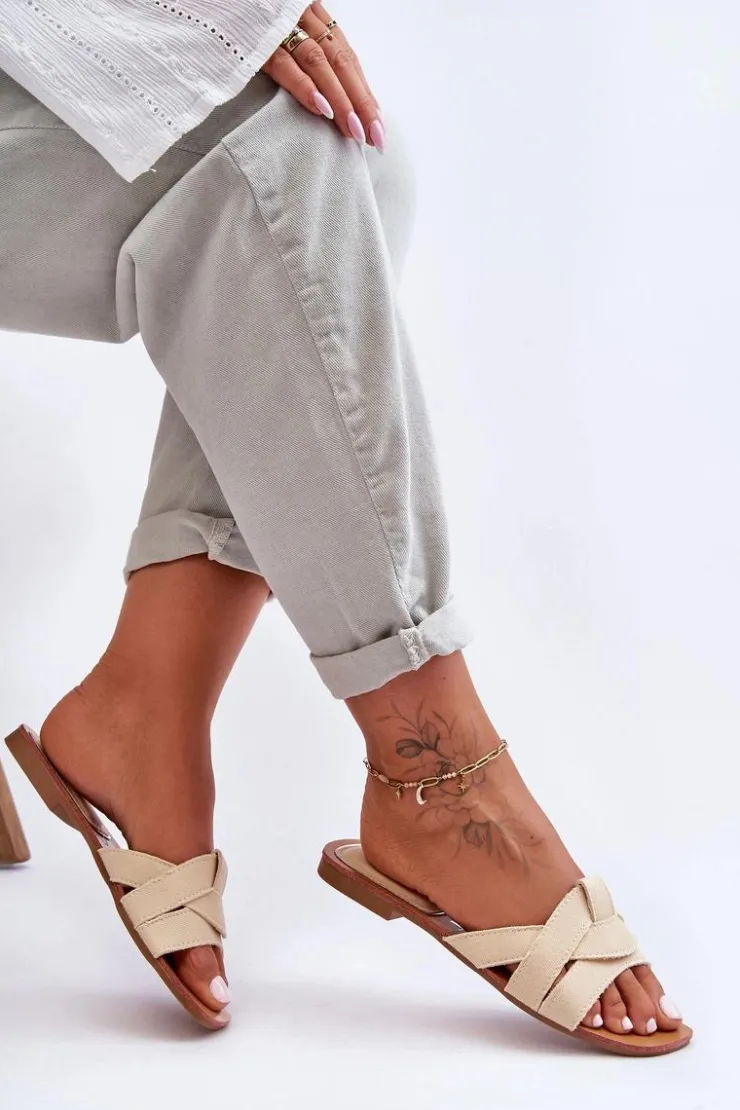 Damskie klapki na płaskim obcasie z gumową, antypoślizgową podeszwą świetnie sprawdzą się podczas codziennego użytkowania. Cholewka została wykonana z materiału tekstylnego, natomiast wkładka z połączenia tworzywa sztucznego i materiału. Ten klasyczny model charakteryzuje się przeplatanymi paskami. Prezentowany model zapewni wysoki komfort, nawet w najgorętsze dni! Przy wyborze rozmiaru prosimy sugerować się tabelą rozmiarów.