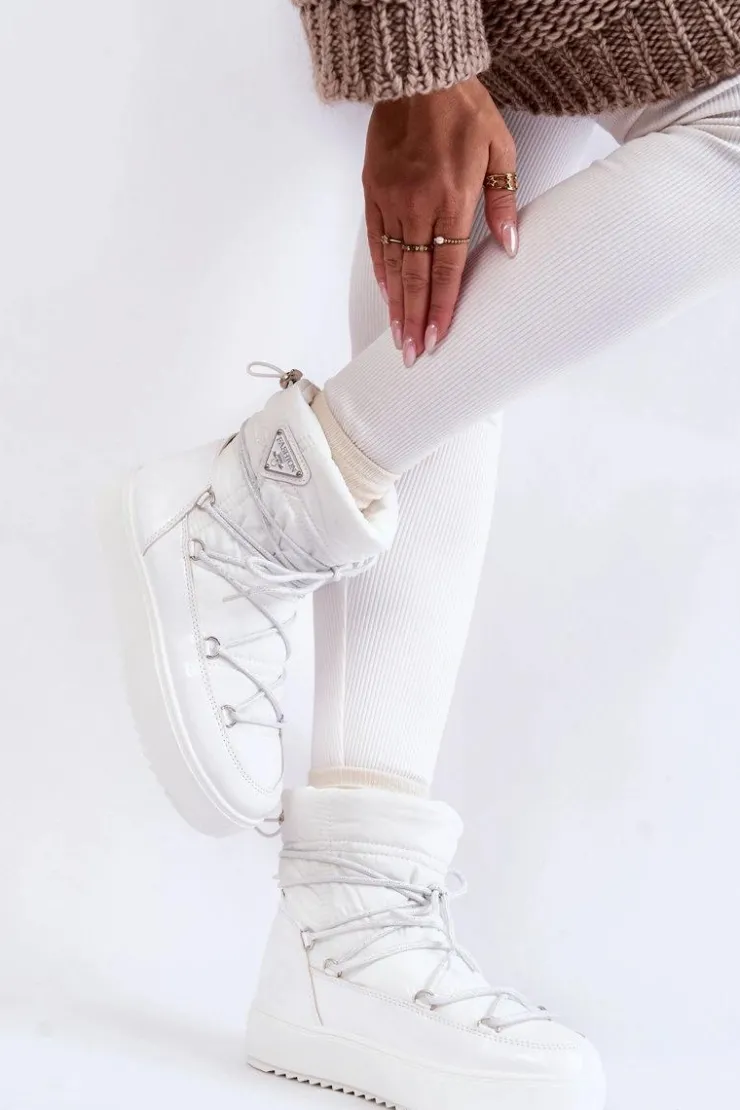 Damskie śniegowce zostały wykonane z materiałów odpornych na wiatr oraz mróz w połączeniu z eko skórą. Model wsuwany z dodatkowym sznurowaniem z przodu oraz ściągaczem u góry cholewki. Śniegowce zostały ocieplone miłym w dotyku futerkiem. Osadzone na platformie, która izoluje od zimnego i mokrego podłoża. Ten model powinien być właśnie Twój! Przy wyborze rozmiaru prosimy sugerować się tabelą rozmiarów.