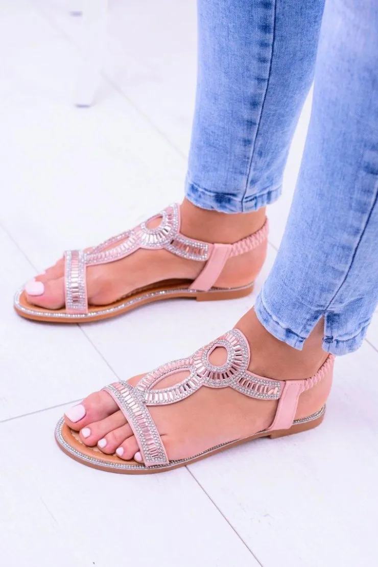 Clearance Boto Damskie Sandałki z Cyrkoniami Rent Pudrowy Róż