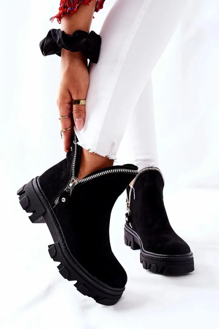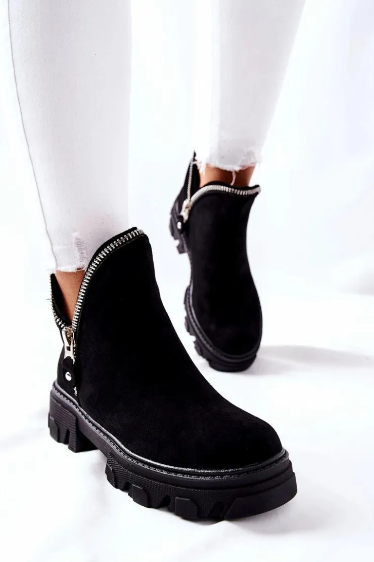 Niesamowite botki, które z pewnością wpadną w oko! To właśnie z tymi botkami stworzysz niesamowite zestawienia stylistyczne. Botki zdobione suwakami wokół cholewki. Gruba podeszwa to ich kolejny atut. Przy wyborze rozmiaru prosimy sugerować się tabelą rozmiarów.