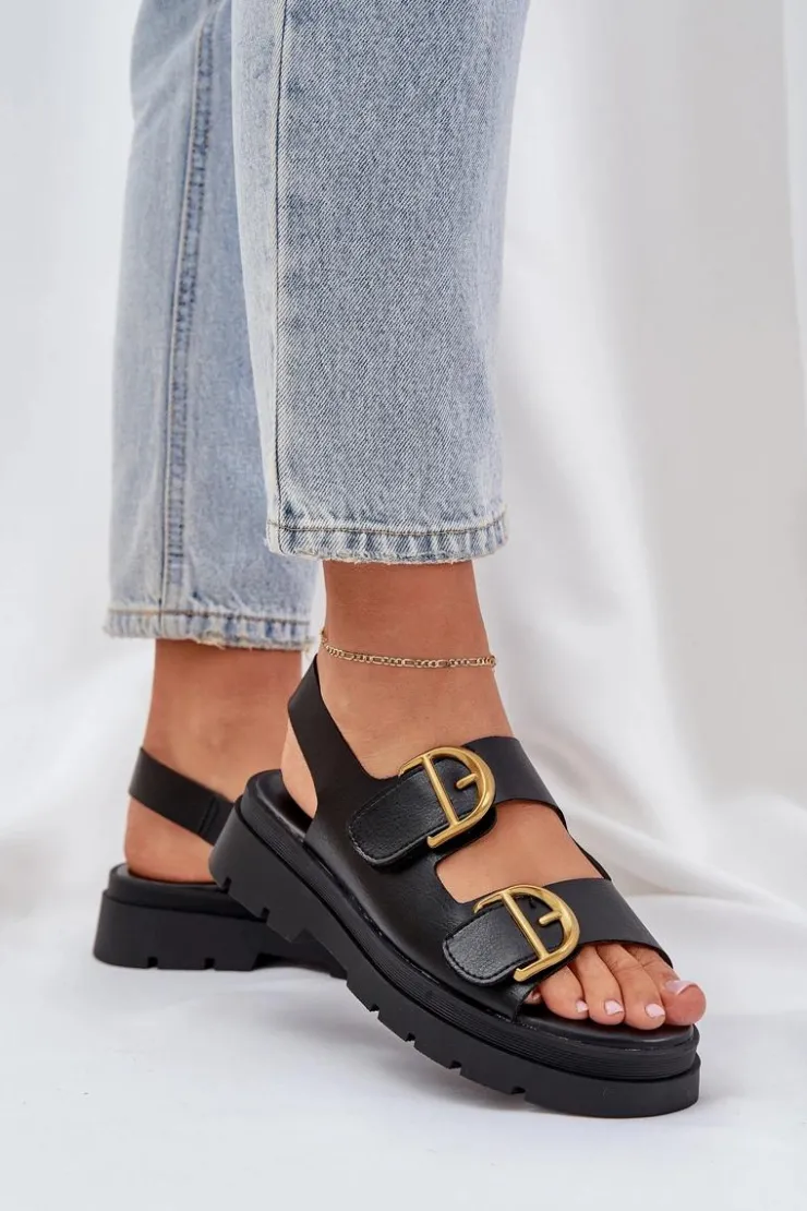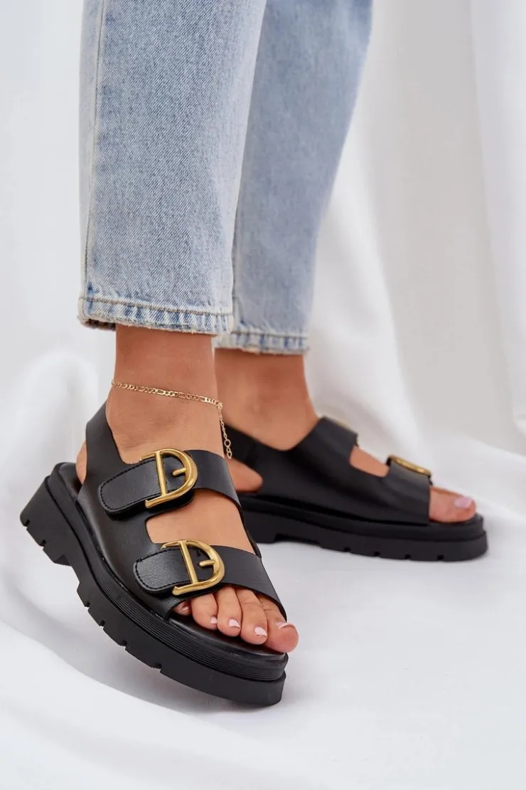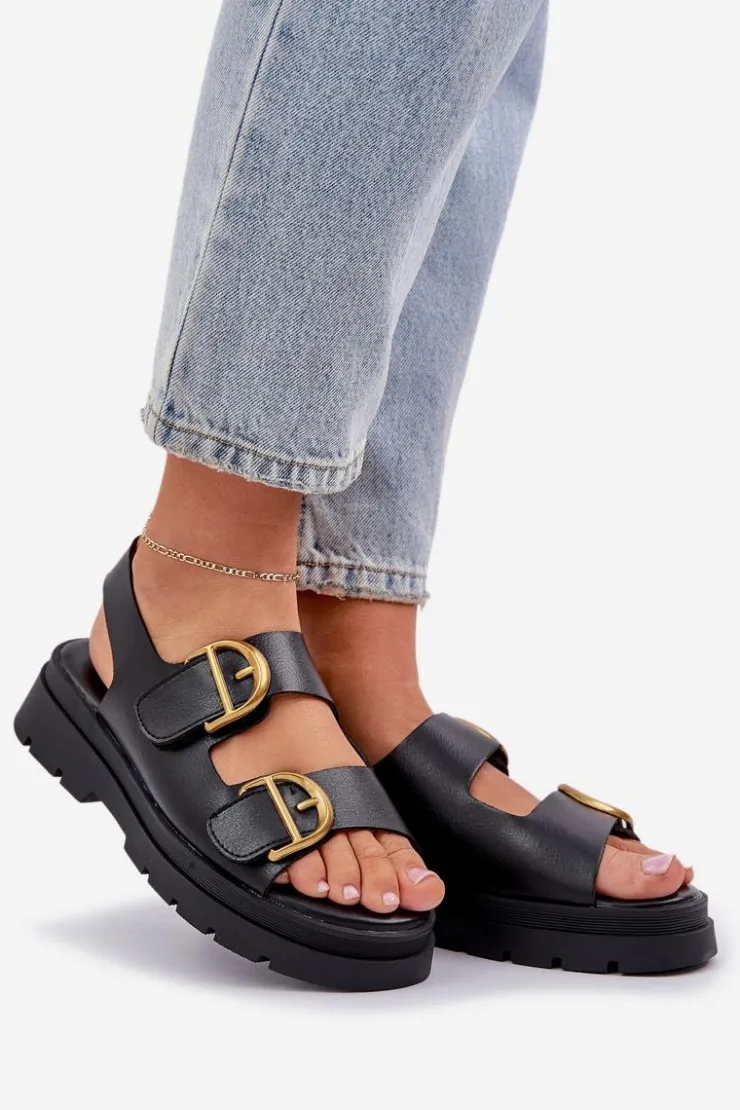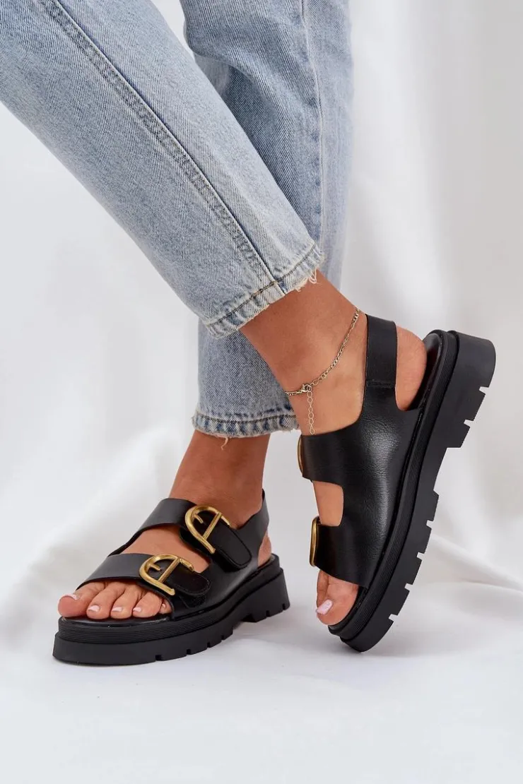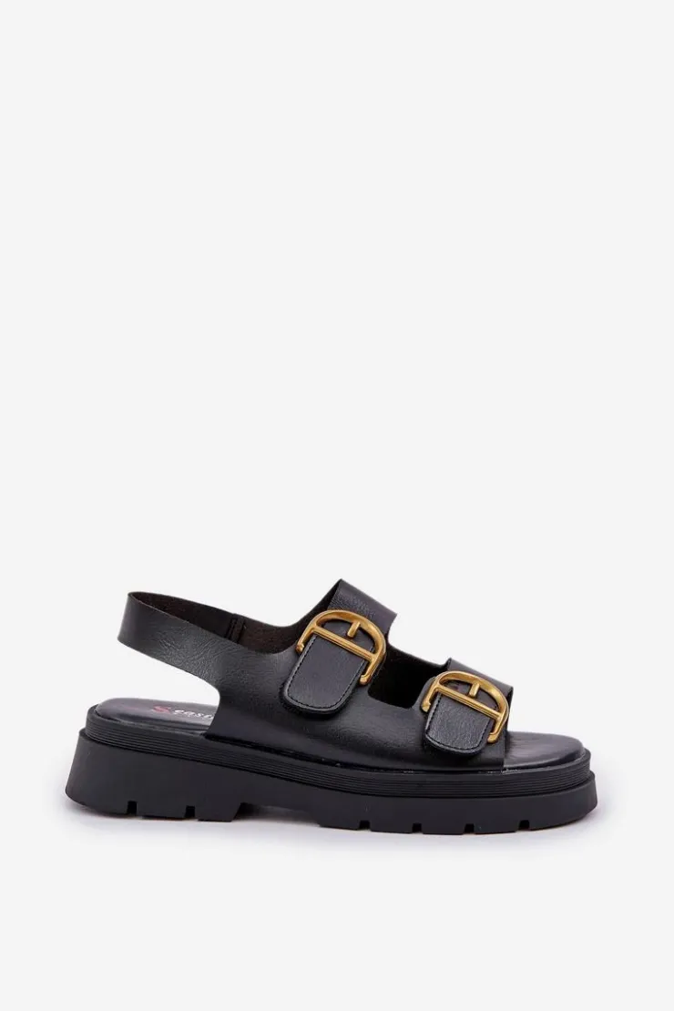 Clearance Boto Eko Skórzane Sandały Z Klamrami Czarne Vulinea Czarny