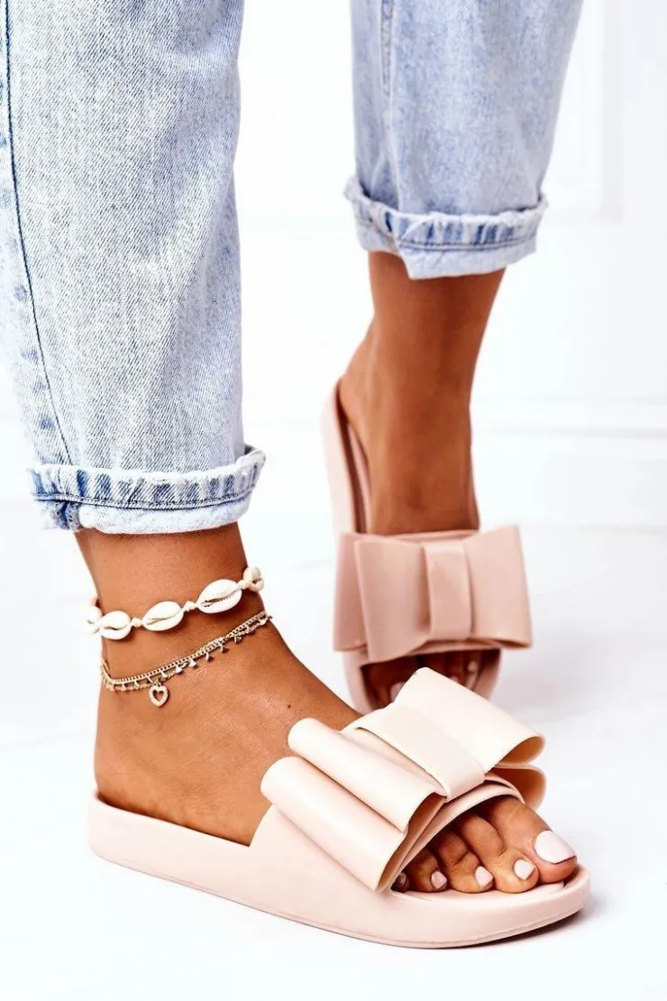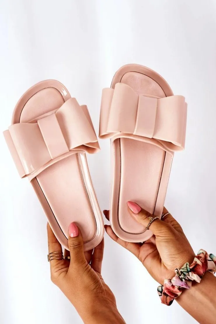 Gumowe klapki damskie z kokardą. Buty posiadają miękką wkładkę ze skóry ekologicznej. Przy wyborze rozmiaru prosimy sugerować się tabelą rozmiarów. 2 Gatunek. Na łączeniu podeszwy widoczny jest klej.