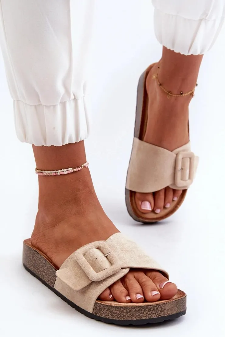 Kapki damskie wykonane z eko zamszu to doskonały wybór na lato. Pasek z klamrą nadaje im modny wygląd. Osadzone na grubej podeszwie, która zapewni stabilność i wygodę podczas chodzenia. Idealne, aby dodać do swojej letniej garderoby nutę stylu i komfortu. Przy wyborze rozmiaru prosimy sugerować się tabelą rozmiarów.
