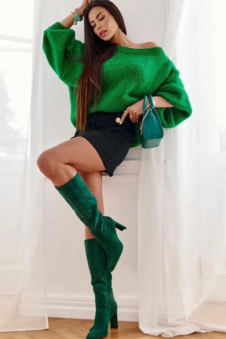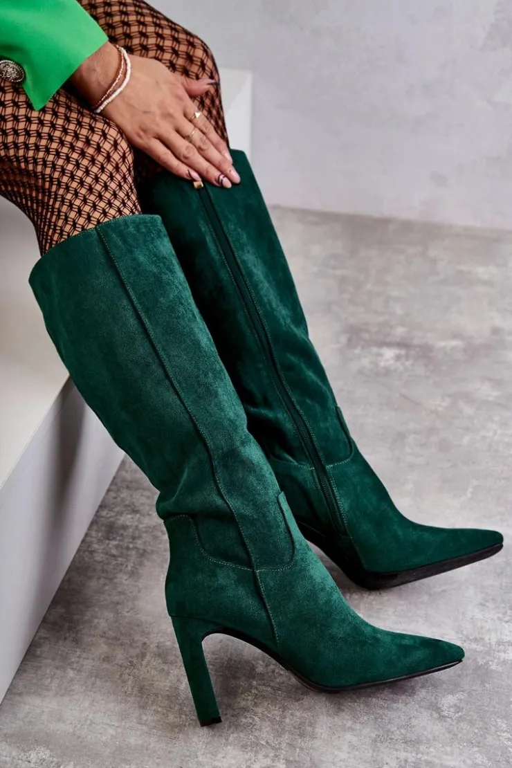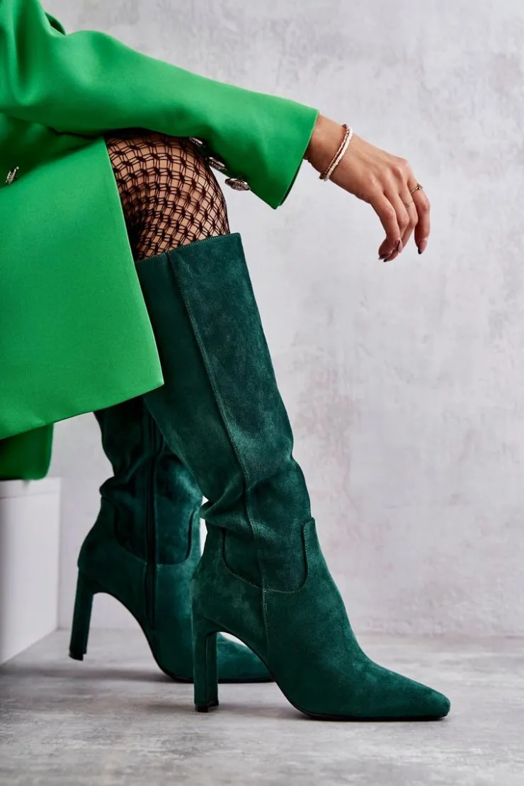 Clearance Boto Kozaki Damskie Na Słupku Do Kolana Zielone Truly Love