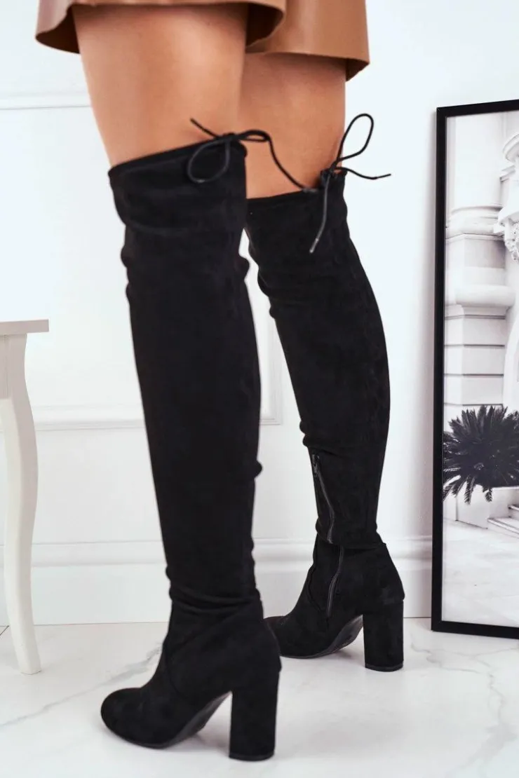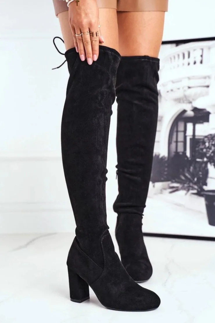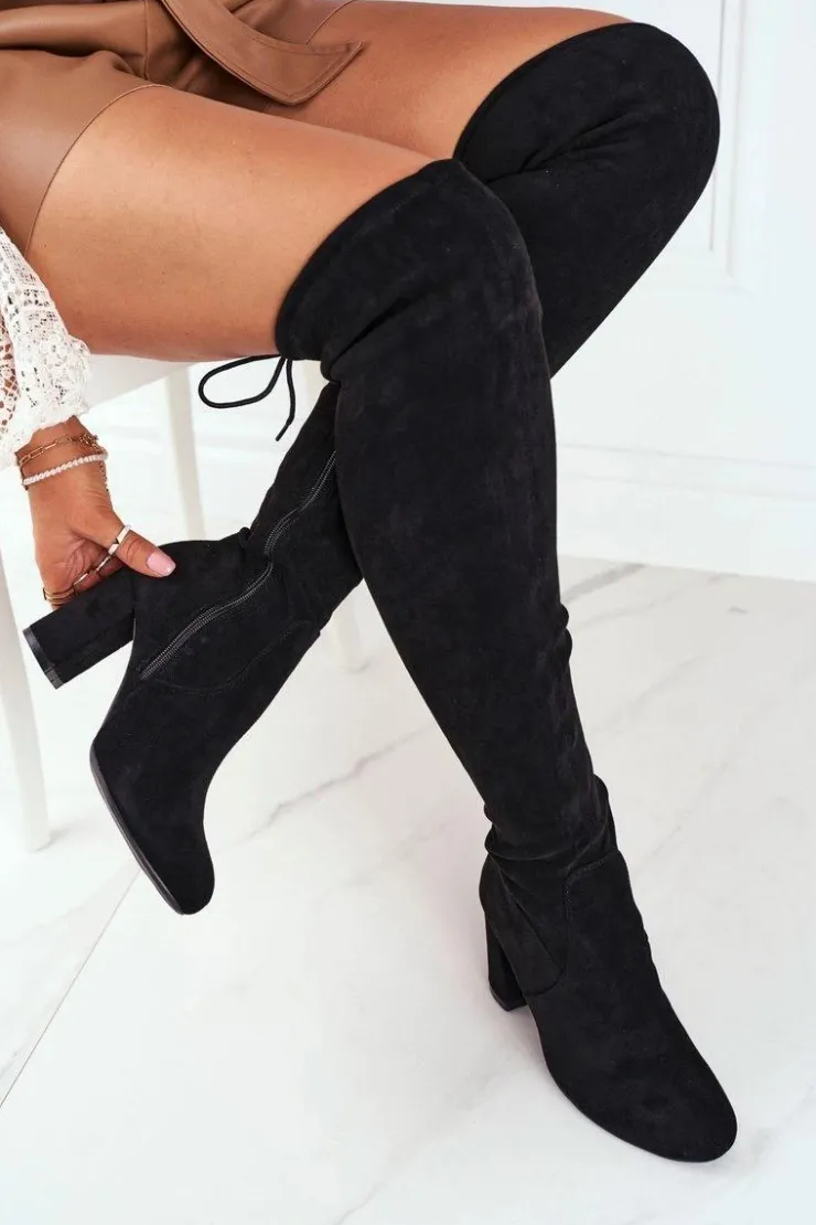 Clearance Boto Kozaki Damskie Zamszowe Na Słupku Czarne Highso