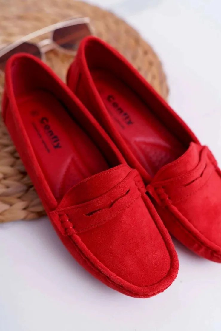 Clearance Boto Mokasyny Damskie Lekkie Eko-zamsz Czerwone Limez