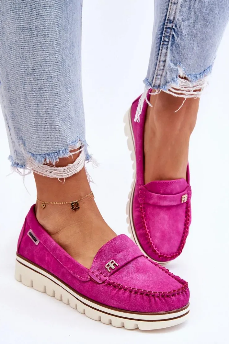 Klasyczne, damskie mokasyny zostały wykonane z eko skóry. Posiadają na przodzie paseczek z ozdobą. Model ten został osadzony na platformie i niskim koturnie. Wkładka w tym obuwiu została wykonana z naturalnej skóry i jest niezwykle wygodna w użytkowaniu. Przy wyborze rozmiaru prosimy sugerować się tabelą rozmiarów.