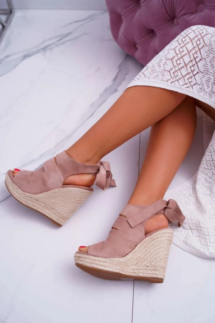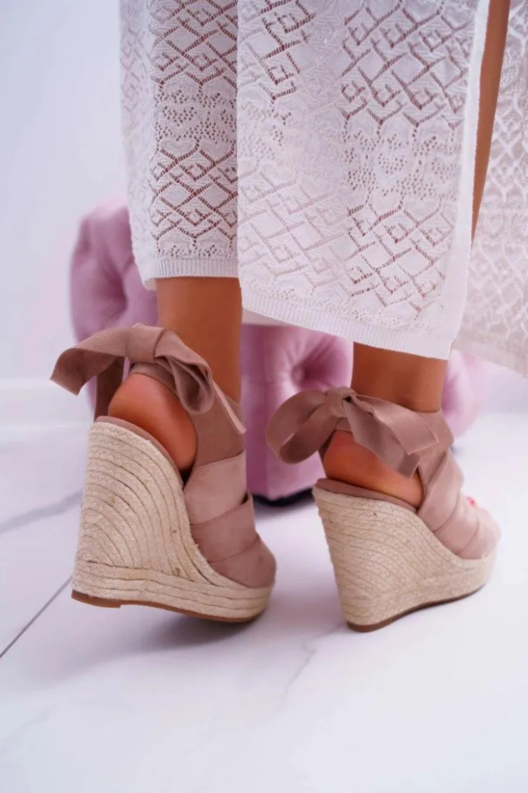 Clearance Boto Sandały Damskie Na Koturnie Lniane Wiązane Beżowe Cantare