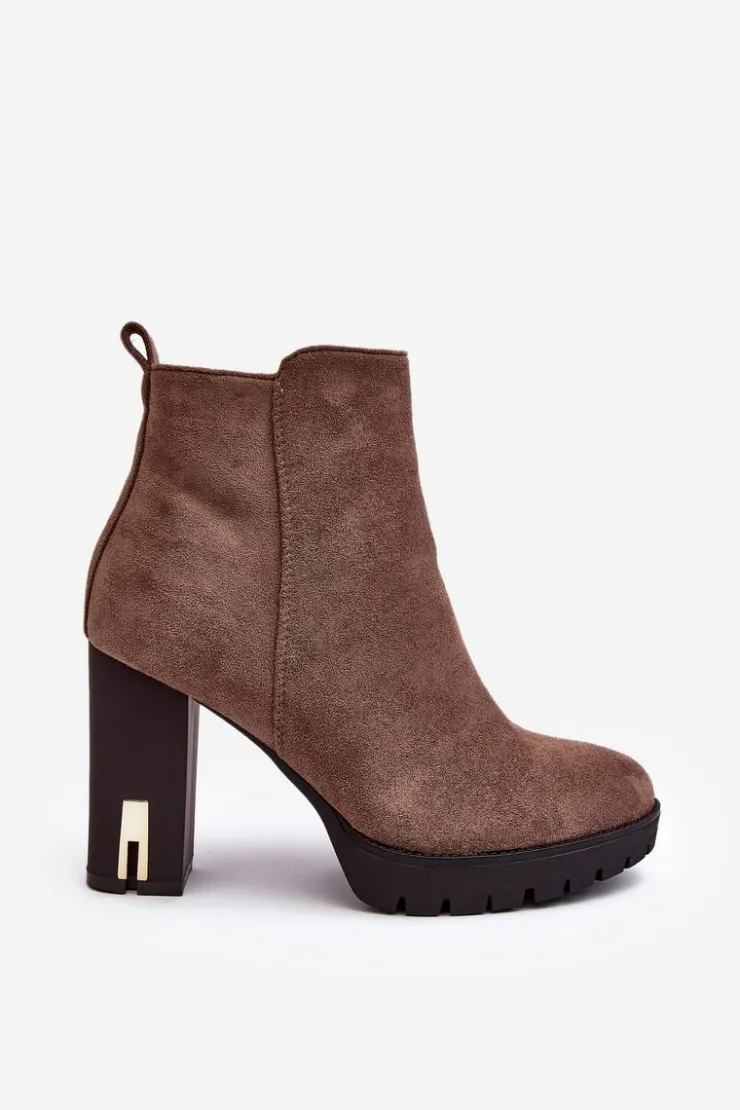Klasyczne botki damskie zostały wykonane z miłego w dotyku eko zamszu. Osadzone na obcasie w postaci słupka. Buty te posiadają migdałowy nosek oraz usztywniany zapiętek. Model z suwakiem z boku cholewki. W środku nie posiadają ocieplenia, natomiast wkładka została wykonana z eko skóry. Przy wyborze rozmiaru prosimy sugerować się tabelą rozmiarów.