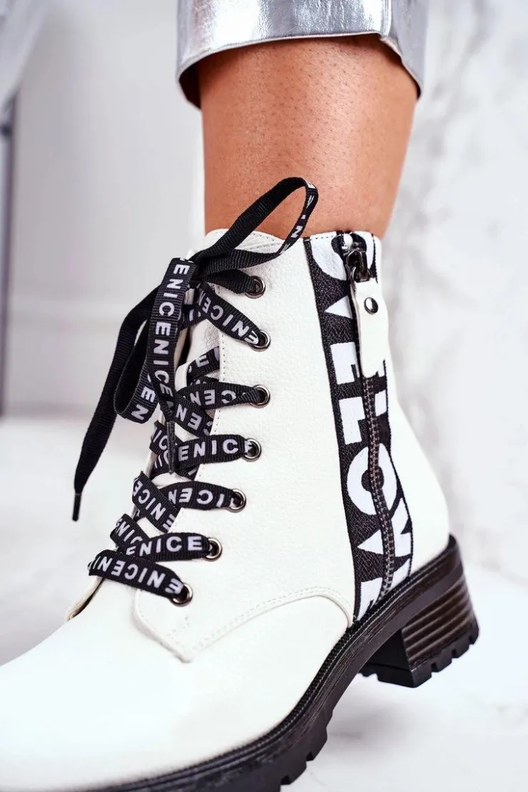 Tak, dobrze widzisz! Te cudowne trapery mogą być Twoje! Wierzch wykonany ze skóry ekologicznej. Trapery zdobione suwakiem z napisem LOVE, drugi suwak natomiast ułatwi nam zakładanie. Czarne sznurowadła z napisem NICE to idealne podkreślenie tych cudeniek, którym z pewnością nie możesz się oprzeć <3 Przy wyborze rozmiaru prosimy sugerować się tabelą rozmiarów.