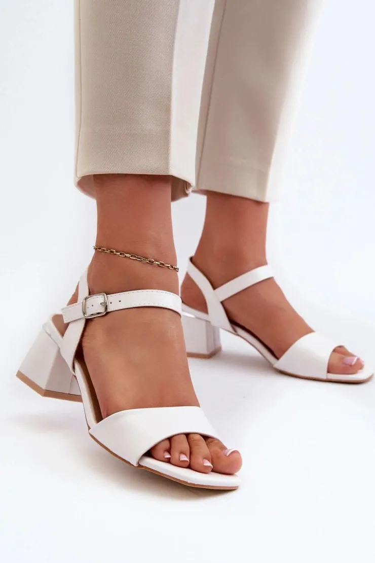 Sandały damskie wykonane z eko skóry. Obcas w postaci klocka zapewnia stabilność. Zapinane na regulowany pasek ze sprzączką, gwarantują idealne dopasowanie do stopy. Idealne do letnich sukienek! Przy wyborze rozmiaru prosimy sugerować się tabelą rozmiarów.