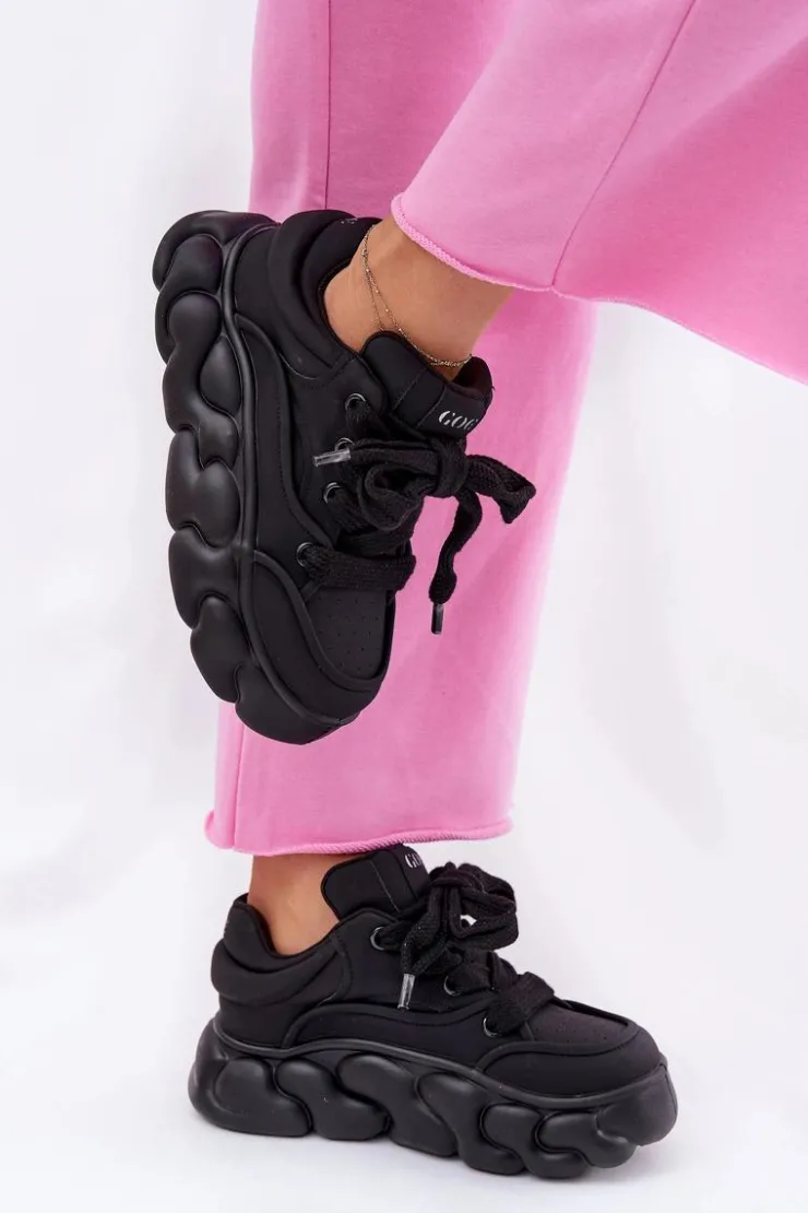Clearance GOE Skórzane Sneakersy Damskie Na Masywnej Platformie RR2N4044 Czarne Czarny