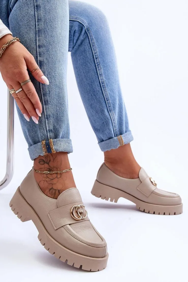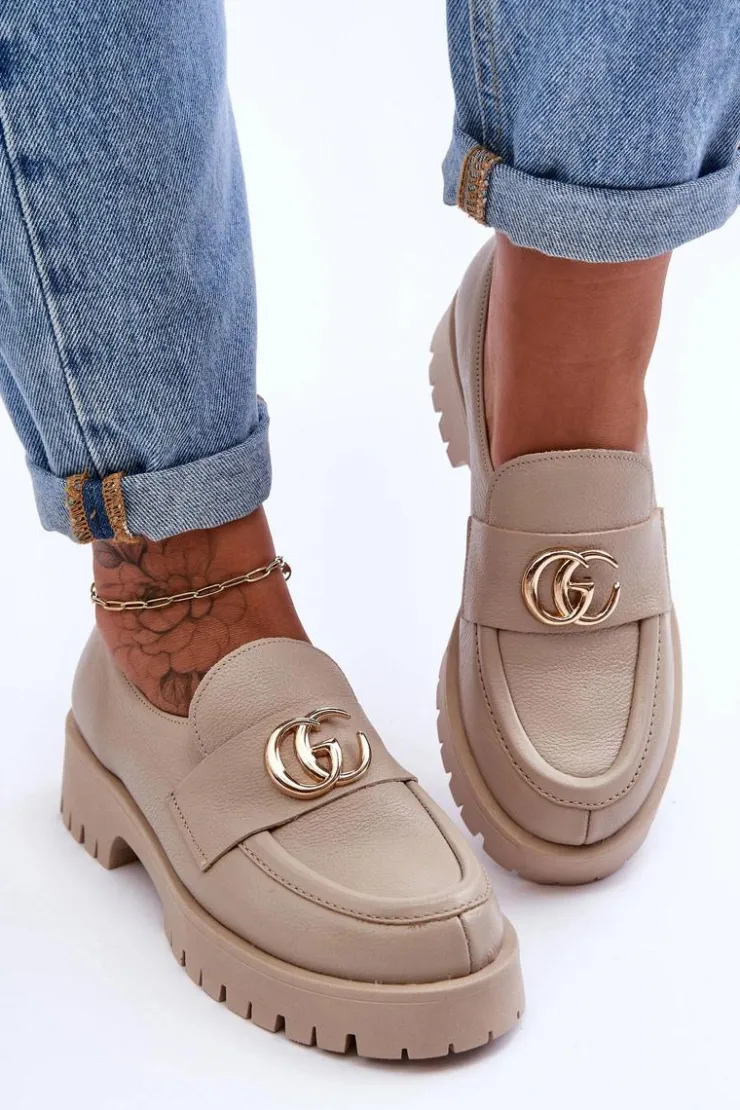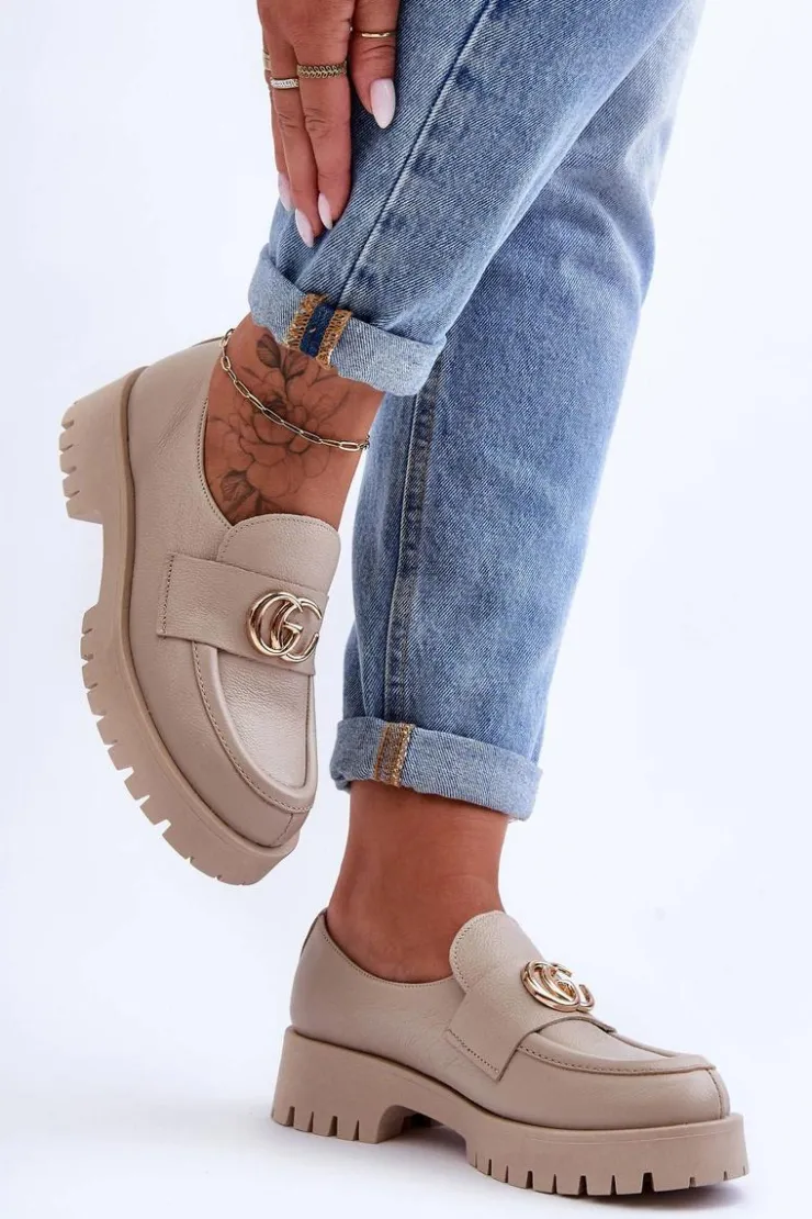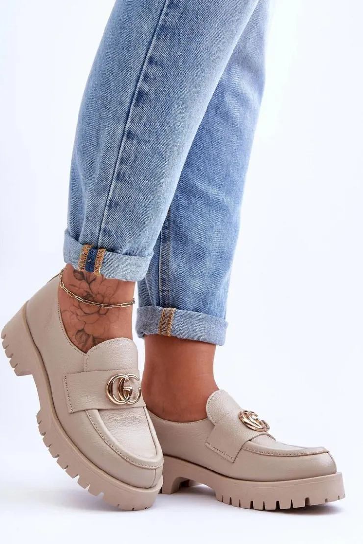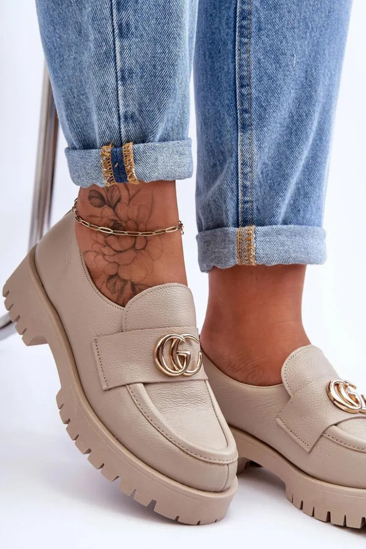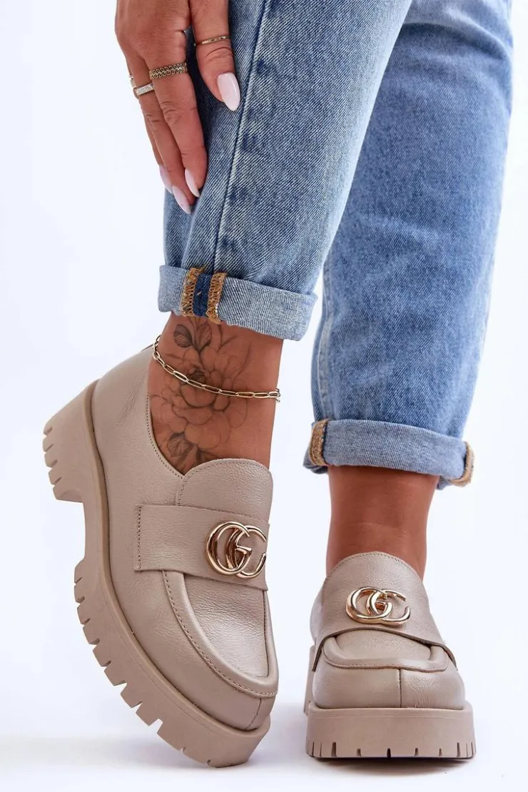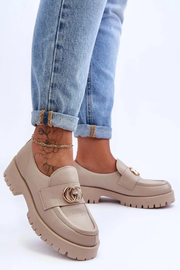 Eleganckie półbuty damskie zostały wykonane ze skóry naturalnej. Osadzone na masywnej platformie i płaskim, stabilnym obcasie. Wkładka ze skóry naturalnej, a podeszwa wykonana z gumowego tworzywa. Model klasyczny, wsuwany. Dodatkowo pod językiem znajduje się gumka ściągająca, która sprawi, że but będzie idealnie dopasowany do stopy. Buty te sprawdzą się w wielu stylizacjach! Koniecznie sprawdź całą naszą kolekcję półbutów! Przy wyborze rozmiaru prosimy sugerować się tabelą rozmiarów.