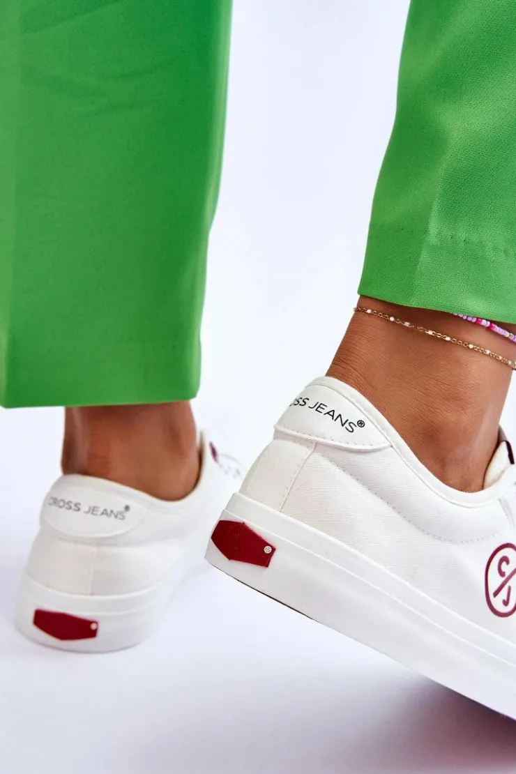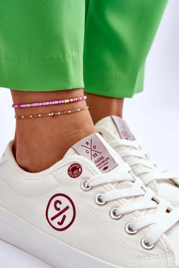 Damskie, klasyczne tenisówki od marki CROSS JEANS. Buty dobrze dopasowują się do kształtu stopy, dzięki wykonaniu cholewki z materiału tekstylnego. Posiadają miękką, materiałową wkładkę oraz antypoślizgową podeszwę wykonaną z gumowego tworzywa. Model sznurowany. Buty posiadają delikatnie usztywniany zapiętek. Koniecznie sprawdź całą naszą kolekcję butów marki CROSS JEANS! Przy wyborze rozmiaru prosimy sugerować się tabelą rozmiarów.