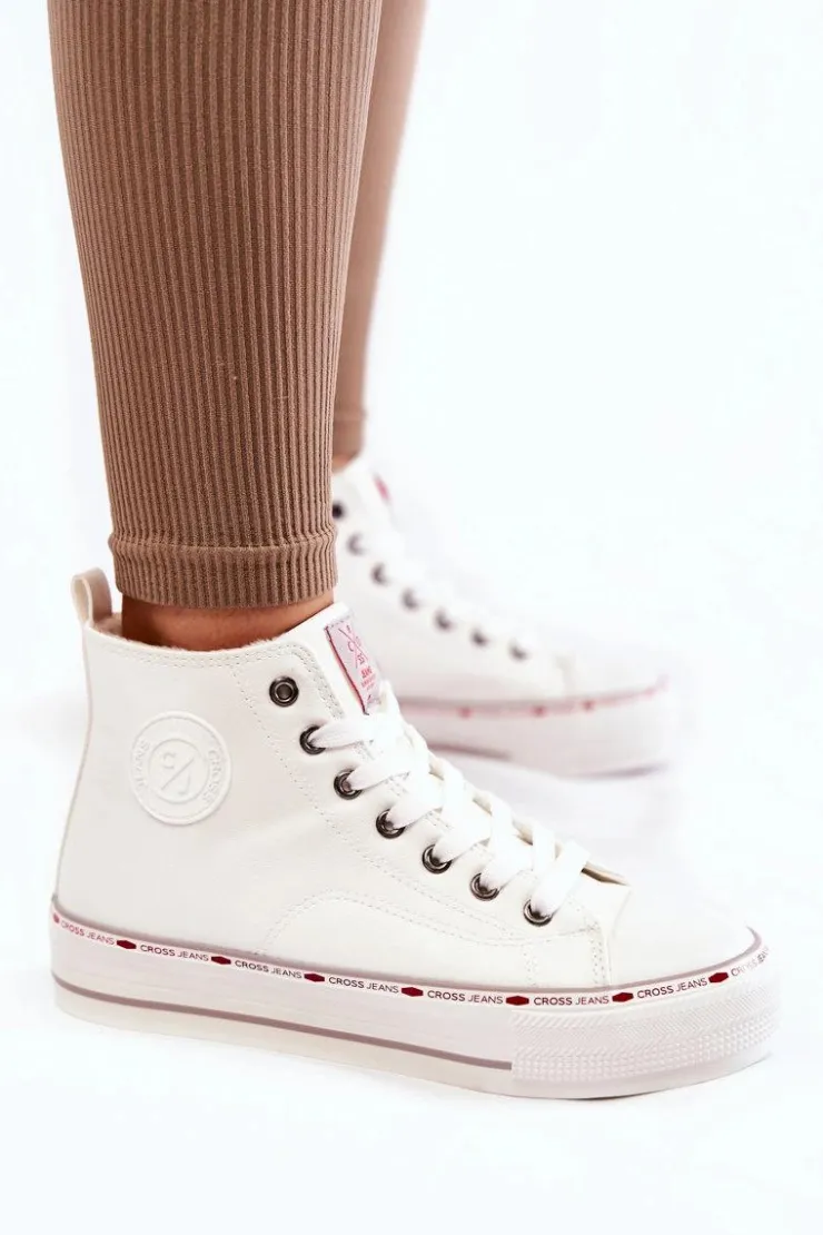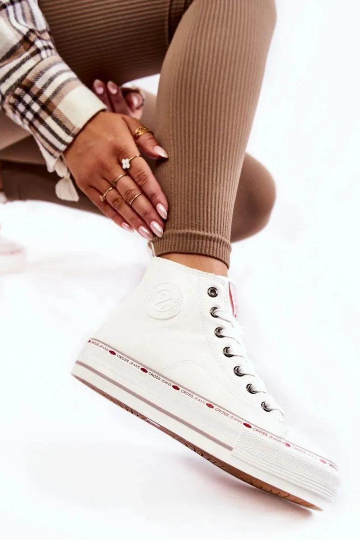 Jeśli szukasz idealnych trampek, to firma Cross Jeans ma coś specjalnego! Wysokie trampki sięgające powyżej kostek. Model klasycznie wiązany z ozdobnym logo na cholewce oraz języku. Dodatkowym atutem jest solidna antypoślizgowa podeszwa. Wykonane ze skóry ekologicznej. Buty zostały ocieplone miękkim kocem obuwniczym. Idealnie uzupełnią wiele jesiennych stylizacji. Musisz je mieć! Przy wyborze rozmiaru prosimy sugerować się tabelą rozmiarów.