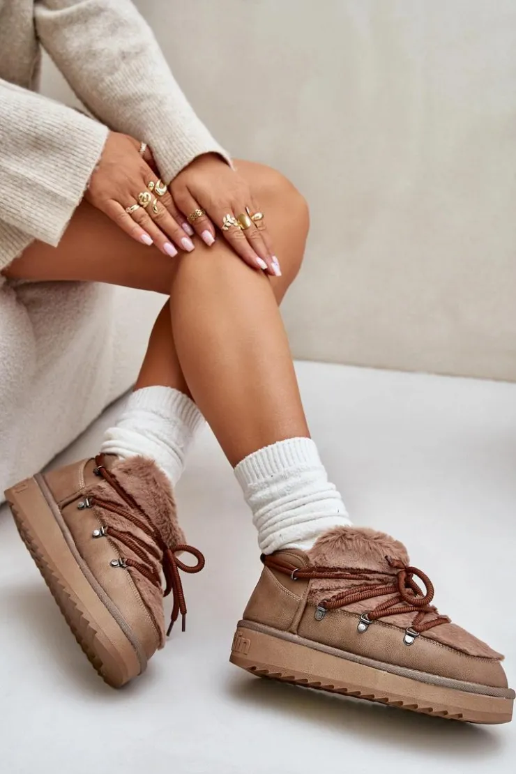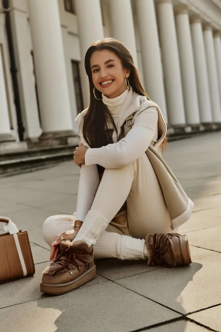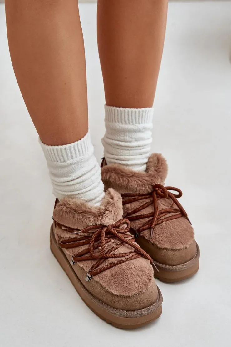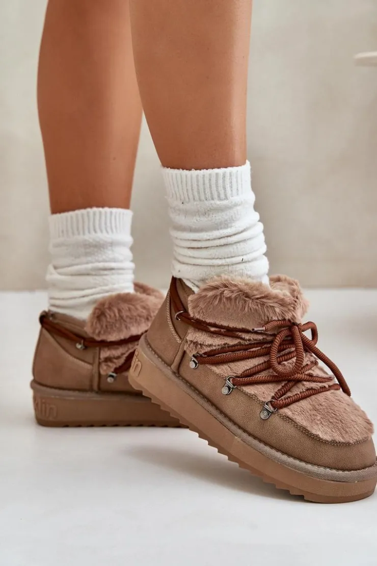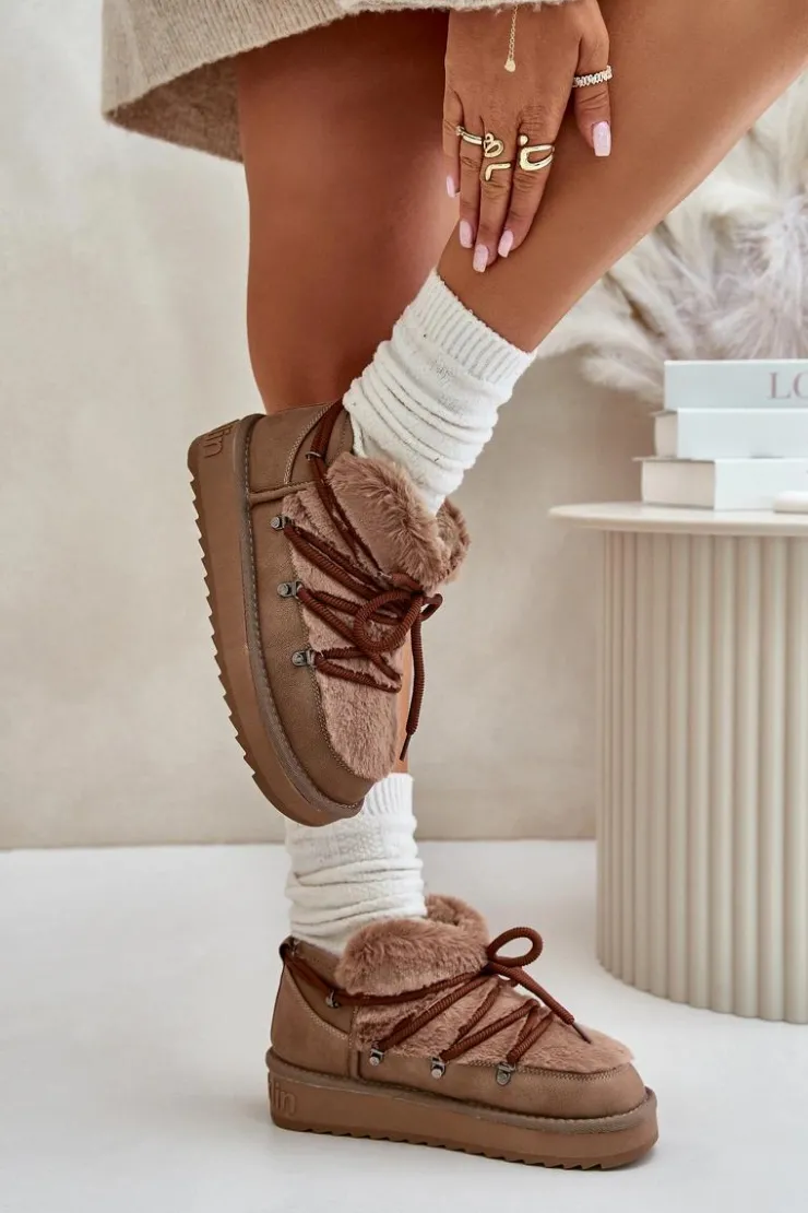 Śniegowce damskie D.Franklin wykonane z eko skóry. Osadzone na podeszwie z gumowego tworzywa. Przód ozdobiony miłym w dotyku futerkiem. Wielopozycyjne sznurowadła zapewnią doskonałe dopasowanie do stopy. Syntetyczna wyściółka w środku. Cholewka do kostki. Śliczny model, który powinnaś mieć w swojej zimowej garderobie! Przy wyborze rozmiaru prosimy sugerować się tabelą rozmiarów.