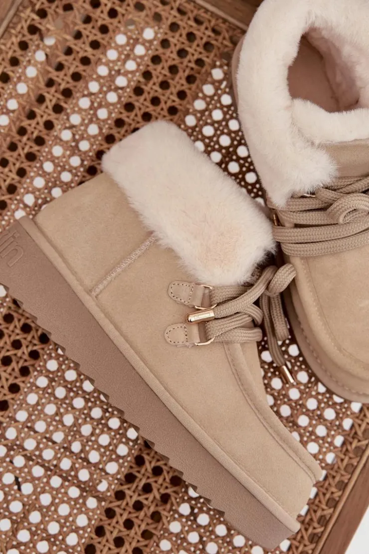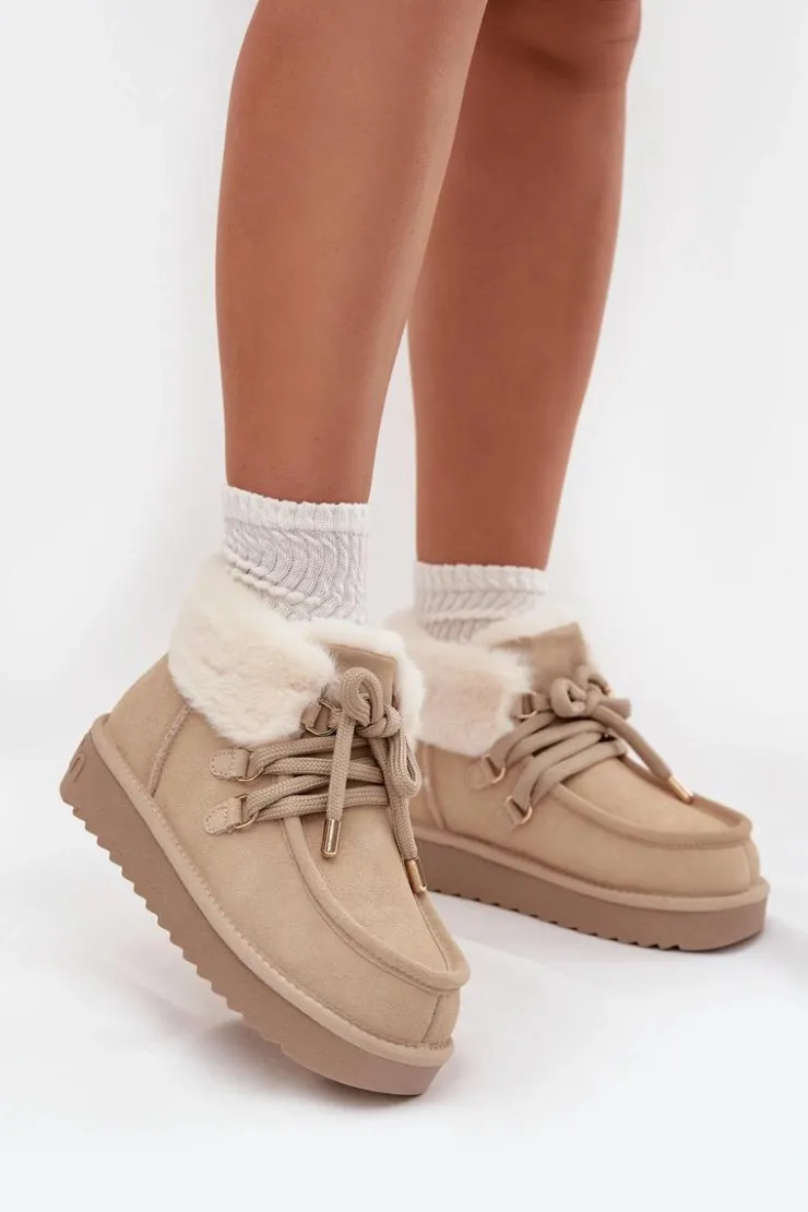 Śniegowce damskie marki D.Franklin wykonane z naturalnego zamszu to idealne połączenie stylu i praktyczności. Ich niski fason sprawia, że prezentują się lekko i nowocześnie, a jednocześnie są wygodne w codziennym użytkowaniu. Wsuwany model z grubszym sznurowaniem pozwala na lepsze dopasowanie do stopy, podkreślając jednocześnie modny charakter butów. Wnętrze ocieplane miękkim futerkiem zapewnia komfort termiczny w mroźne dni, a dodatkowe obszycie futerkiem w górnej części cholewki nadaje całości wyjątkowego uroku. Podeszwa z gumowego tworzywa gwarantuje stabilność i przyczepność na różnych nawierzchniach, co czyni śniegowce niezawodnym wyborem podczas zimowych spacerów. To obuwie, które łączy funkcjonalność i wygodę z modnym wyglądem, idealnie wpisując się w zimowe stylizacje.