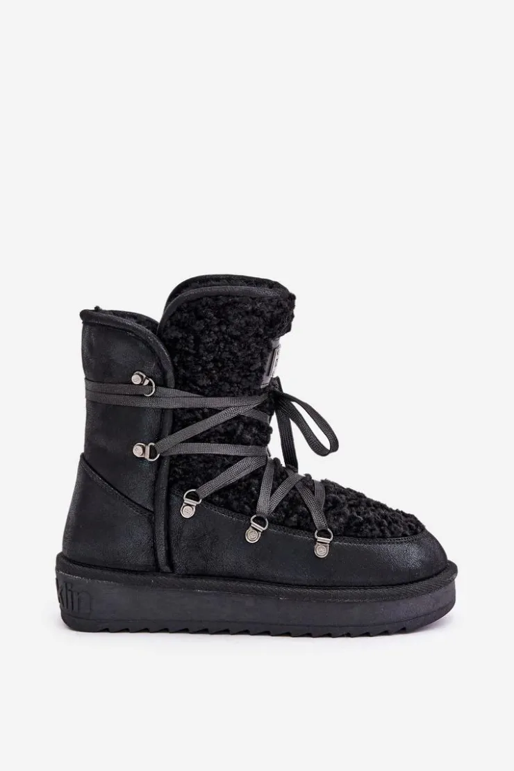 Śniegowce damskie wykonane z wysokiej jakości wodoodpornej tkaniny z mikrofibry. Osadzone na grubej antypoślizgowej podeszwie. Środek oraz przód ocieplony syntetycznym futerkiem. Model ten przeznaczony jest na najmroźniejsze dni. Śniegowce są wsuwane z dodatkowym wiązaniem. Wegańskie. Przy wyborze rozmiaru prosimy sugerować się tabelą rozmiarów.
