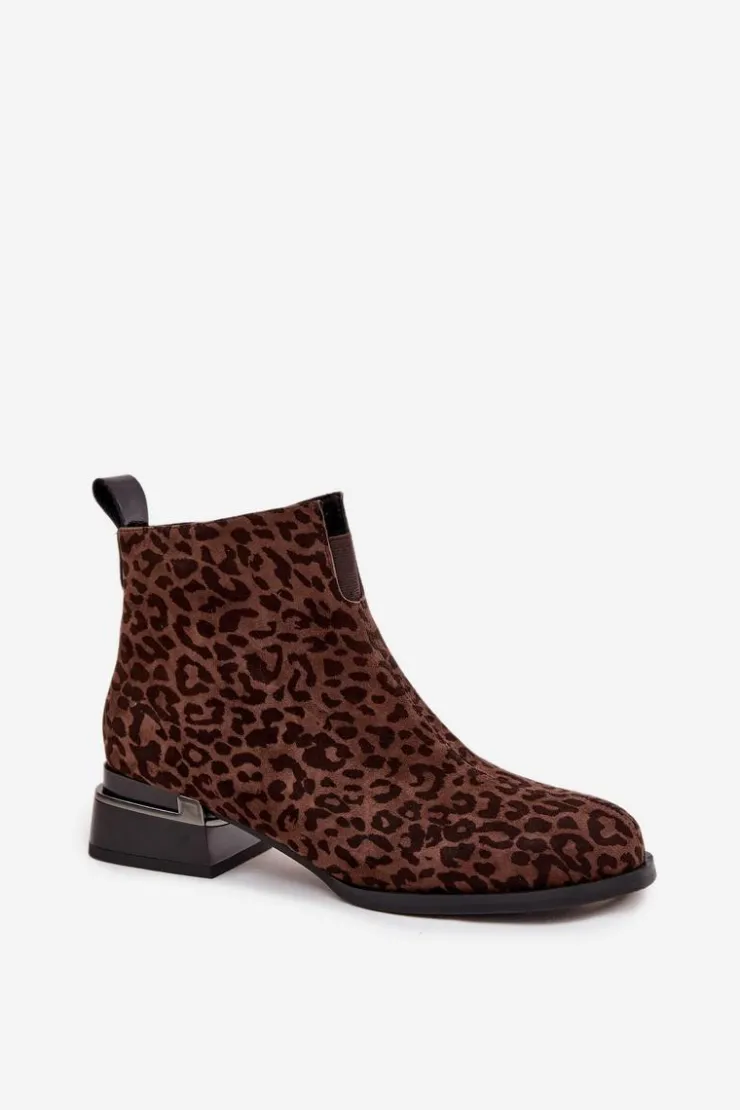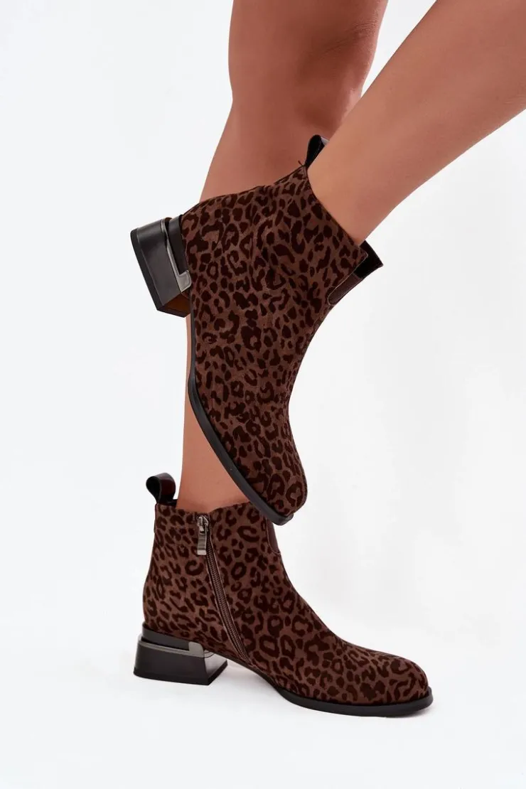 Botki damskie wykonane z naturalnego zamszu to połączenie elegancji i modowego charakteru. Model zachwyca stylowym panterkowym printem, który dodaje całości wyrazistości i kobiecego pazura. Osadzony na stabilnym obcasie typu klocek, zapewnia wygodę i pewność kroku. Wnętrze butów delikatnie ocieplane kocem obuwniczym gwarantuje komfort w chłodniejsze dni. Zaokrąglone noski i dekoracyjne przeszycie biegnące wzdłuż cholewki nadają im eleganckiego wykończenia. Botki zapinane są na zamek, co ułatwia zakładanie. To idealny model dla kobiet, które lubią łączyć klasykę z odrobiną drapieżnego stylu – świetny wybór zarówno do codziennych, jak i bardziej stylowych zestawów. Przy wyborze rozmiaru prosimy sugerować się tabelą rozmiarów.