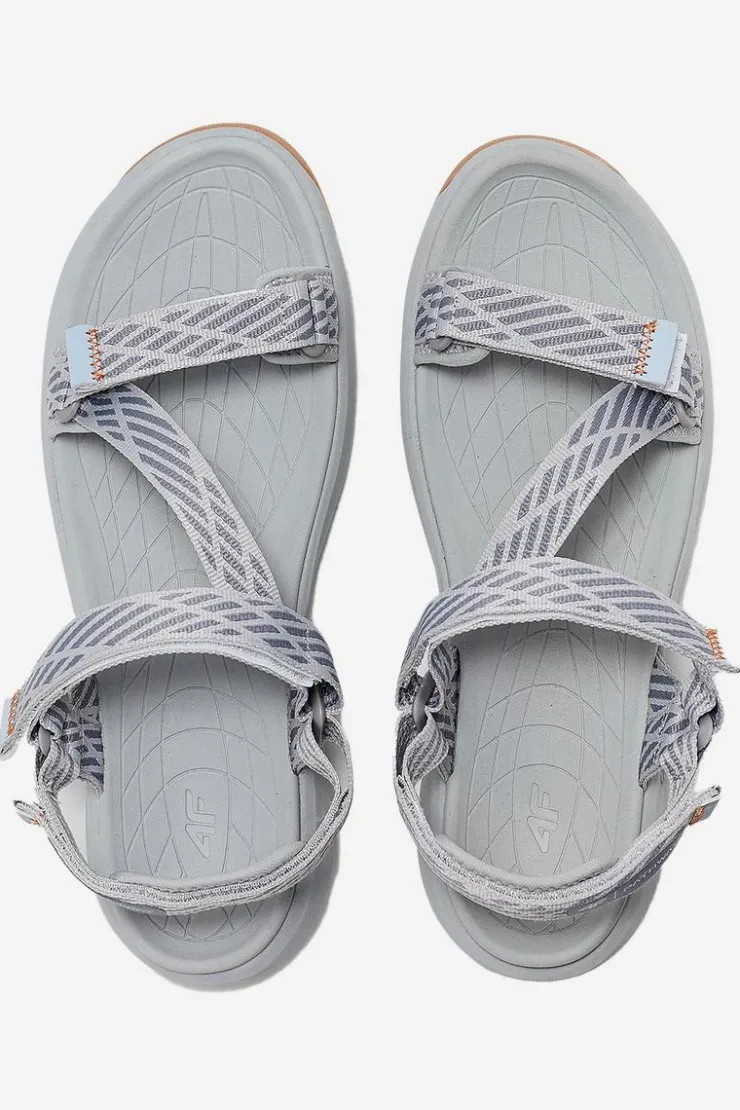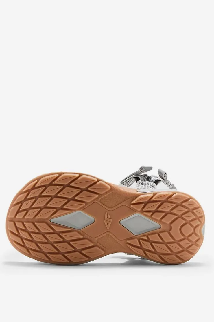 Wygodne sandały damskie marki 4F. Lekka cholewka zapewnia swobodę ruchów, a miękka wyściółka dodaje komfortu podczas noszenia. Potrójne zapięcie paskami na rzep gwarantuje idealne dopasowanie do stopy. Podeszwa z pianki CM-EVA zapewnia doskonałą amortyzację i stabilność, chroniąc stopy przed zmęczeniem nawet podczas długotrwałego noszenia. Dodatkowo gumowa podeszwa z głębokim bieżnikiem zapewnia doskonałą przyczepność na zróżnicowanym podłożu, co sprawia, że te sandały są idealnym wyborem zarówno na letnie spacery, jak i bardziej aktywne aktywności na świeżym powietrzu. Przy wyborze rozmiaru prosimy sugerować się tabelą rozmiarów.