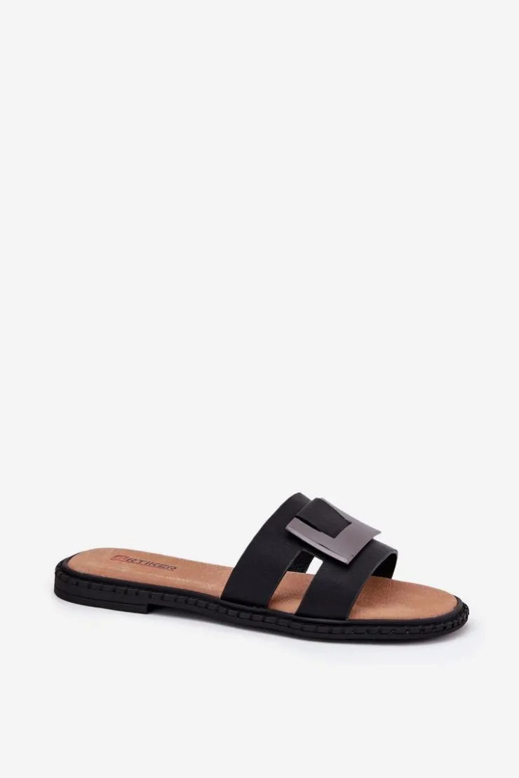 Damskie klapki od marki Artiker stanowią idealny wybór na upalne dni. Umieszczone na płaskim obcasie, gwarantują komfort przez cały dzień. Z przodu znajduje się ozdobny element. Miękka wkładka wykonana z naturalnej skóry gwarantuje wygodę i idealne dopasowanie do stopy. Elegancki fason sprawia, że doskonale pasują do różnych stylizacji, zarówno na co dzień, jak i na bardziej formalne wyjścia. Przy wyborze rozmiaru prosimy sugerować się tabelą rozmiarów.