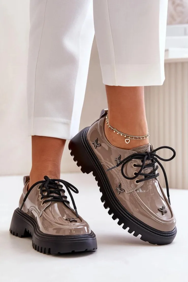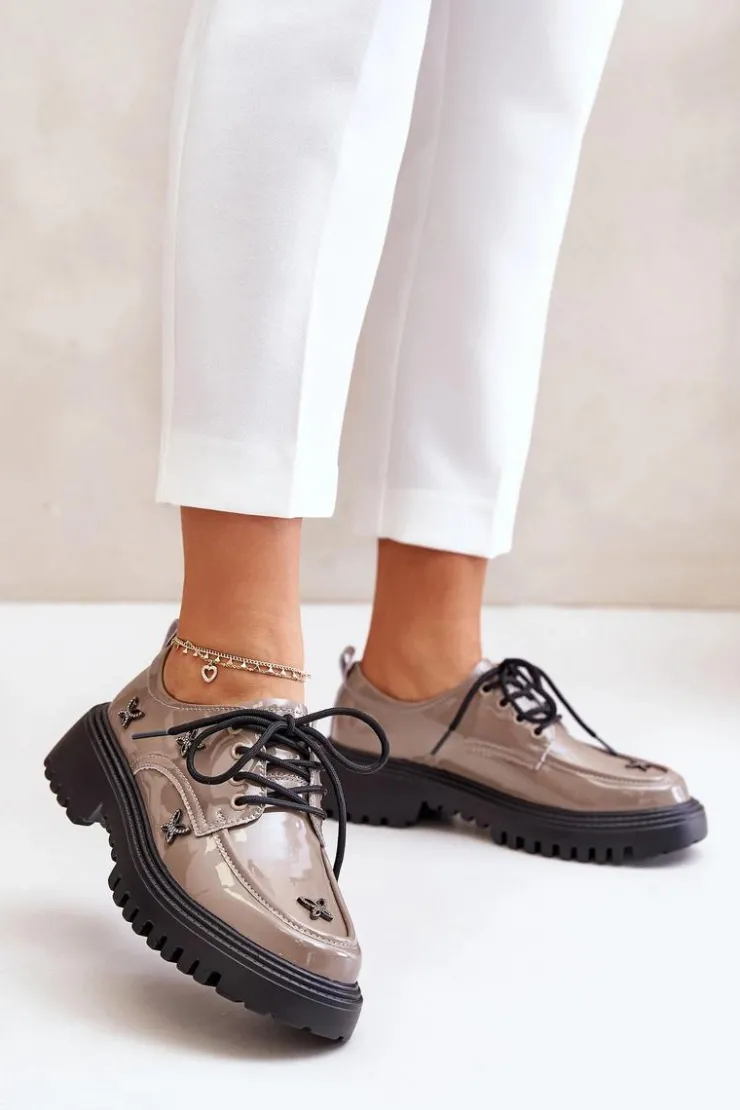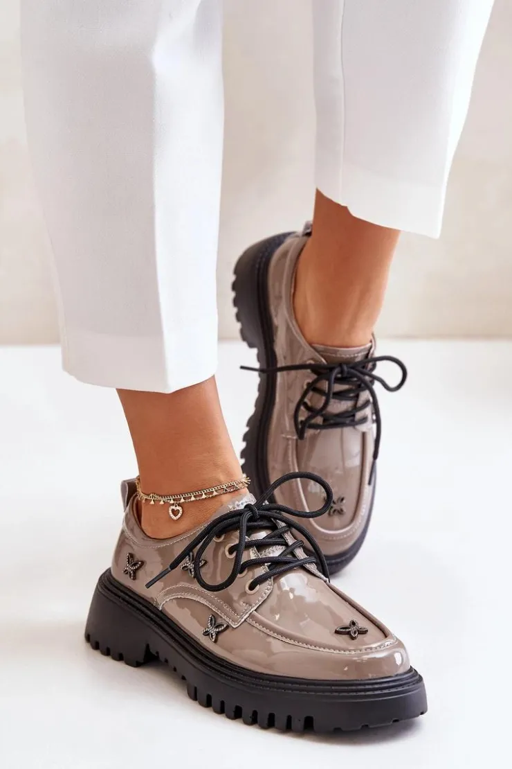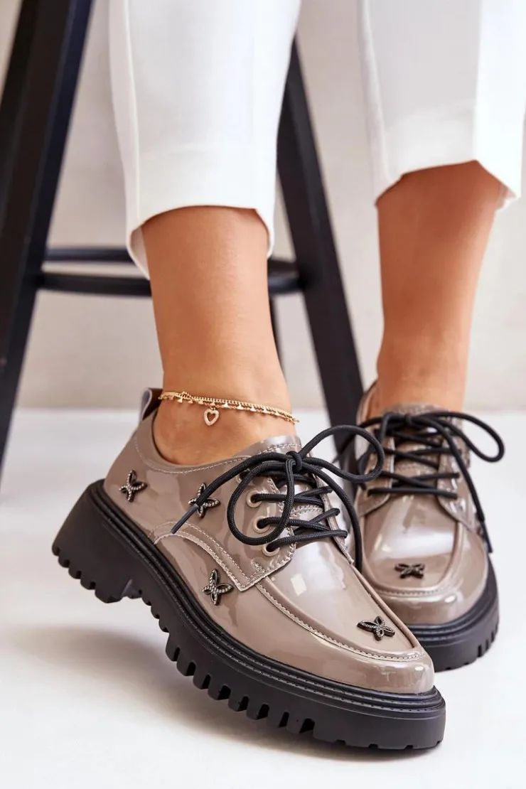 Półbuty damskie wykonane z naturalnej skóry, które zachwycają elegancją i wyrazistymi ozdobami. Model posiada zaokrąglone noski oraz klasyczne sznurowanie, które zapewnia idealne dopasowanie. Idealne zarówno do codziennych stylizacji, jak i na bardziej formalne okazje. Przy wyborze rozmiaru prosimy sugerować się tabelą rozmiarów.