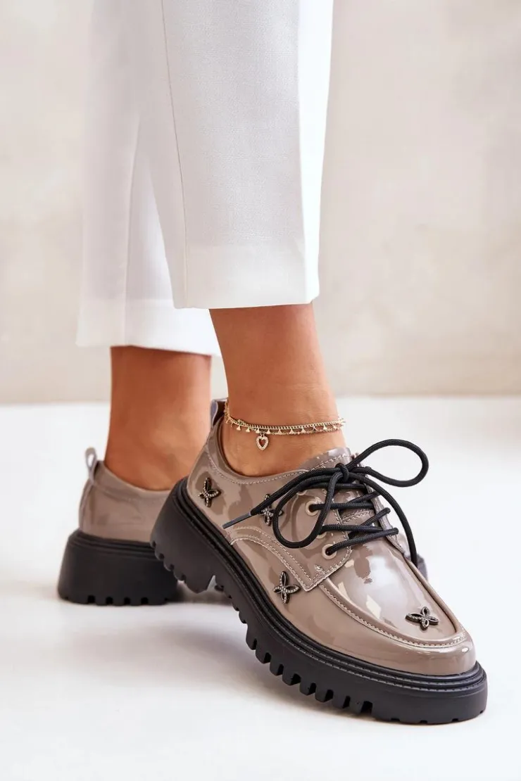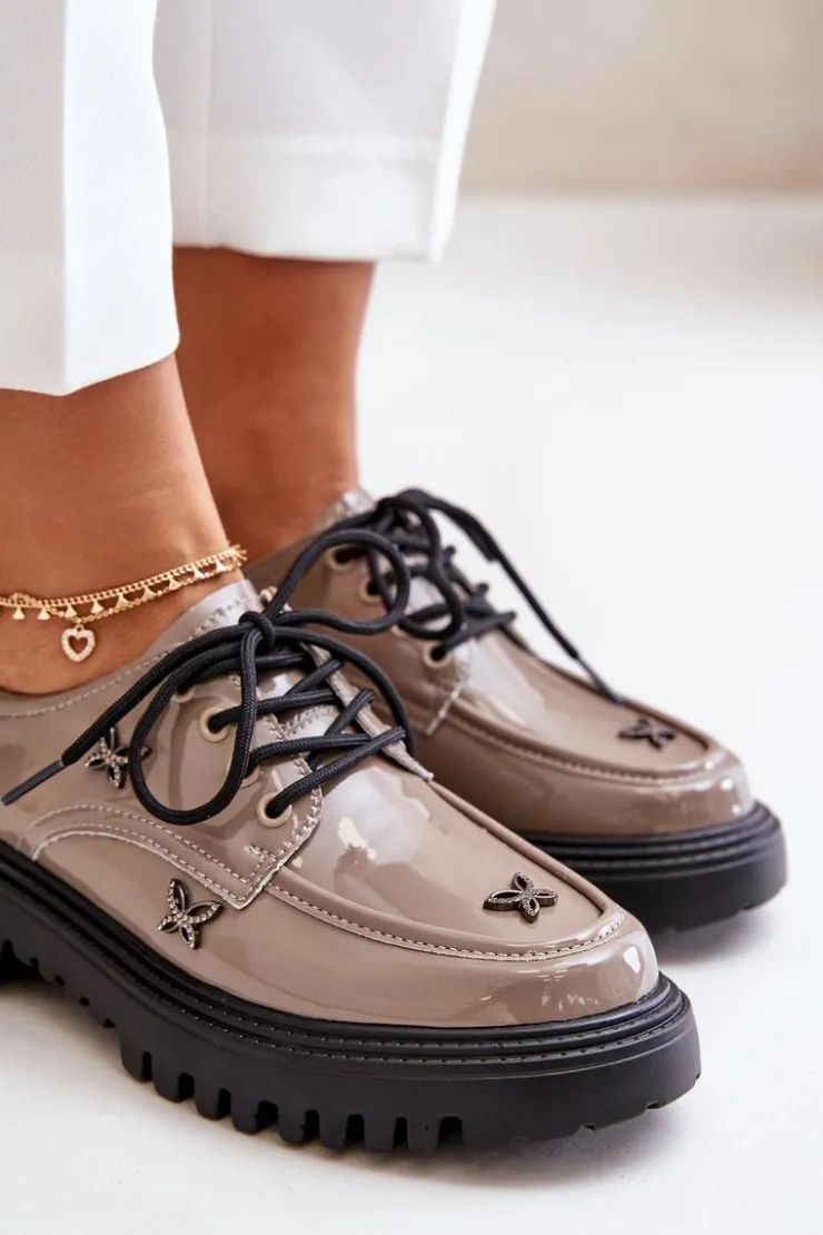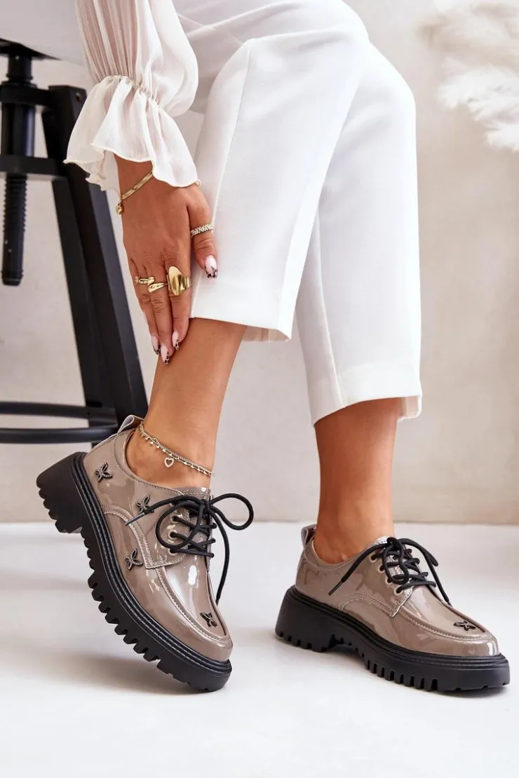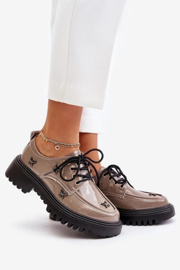 Półbuty damskie wykonane z naturalnej skóry, które zachwycają elegancją i wyrazistymi ozdobami. Model posiada zaokrąglone noski oraz klasyczne sznurowanie, które zapewnia idealne dopasowanie. Idealne zarówno do codziennych stylizacji, jak i na bardziej formalne okazje. Przy wyborze rozmiaru prosimy sugerować się tabelą rozmiarów.
